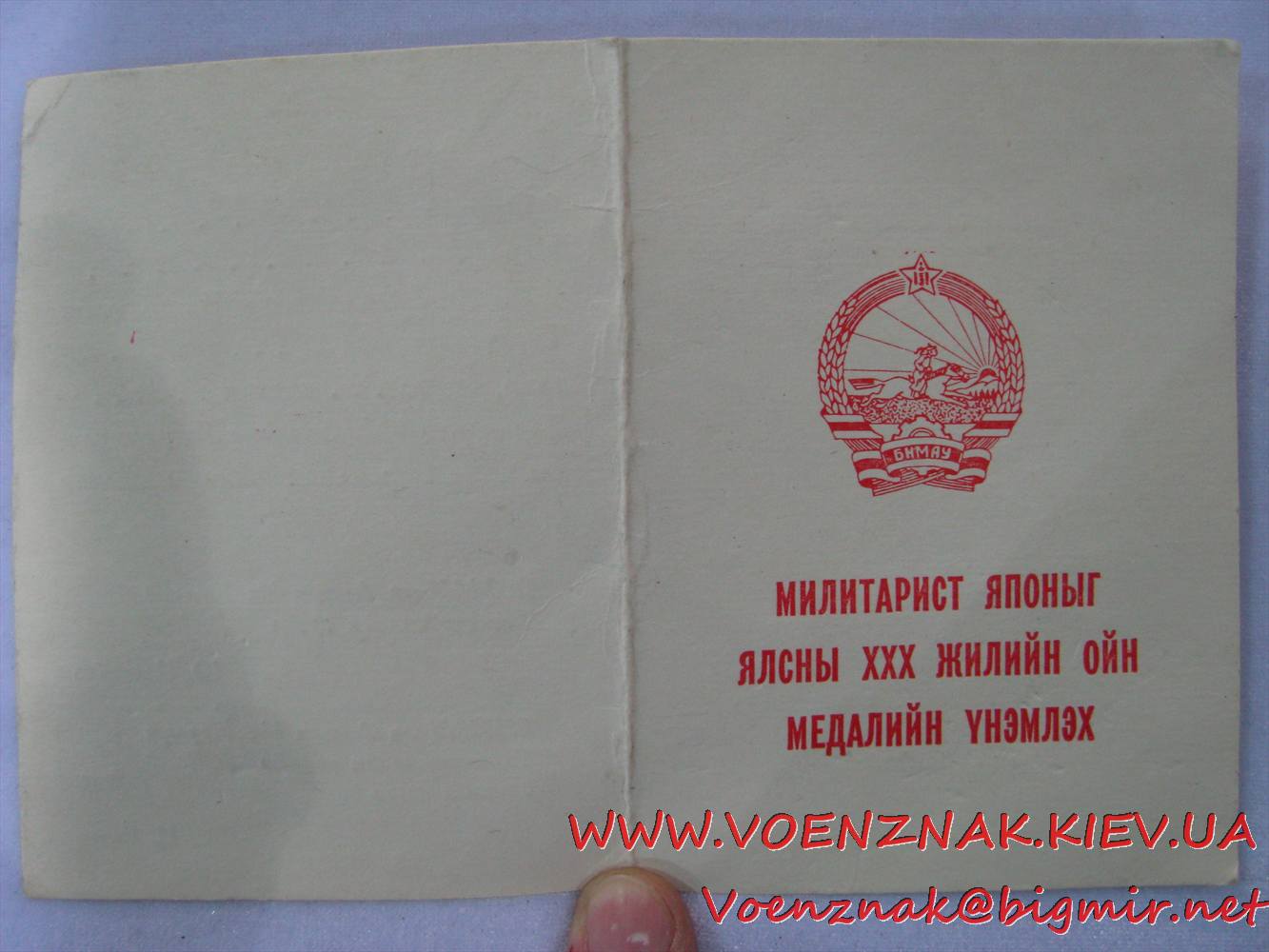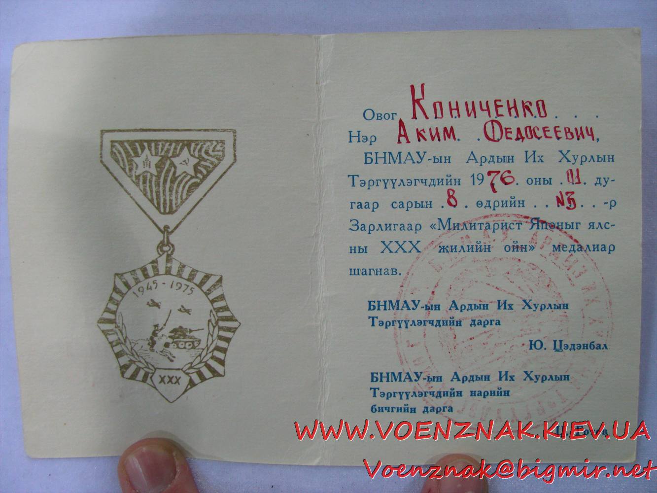 Re: Монгольская медаль+ док Герой Украины - 23 дек 2012 20:23.44 × Мини профиль пользователя Герой Украины Сообщения: 19277 Зарегистрирован: 20 апр 2010 14:22.48 Откуда: Украина Статус: Не в сети - 23 дек 2012 20:23.44 #4001850 Фото Тема поднималась пользователем Герой Украины 23 дек 2012 20:23.44. +380931624321 Viber, WhatsApp, TelegramSkype: ALEXANDR.GEROY E-Mail: Voenznak@bigmir.net