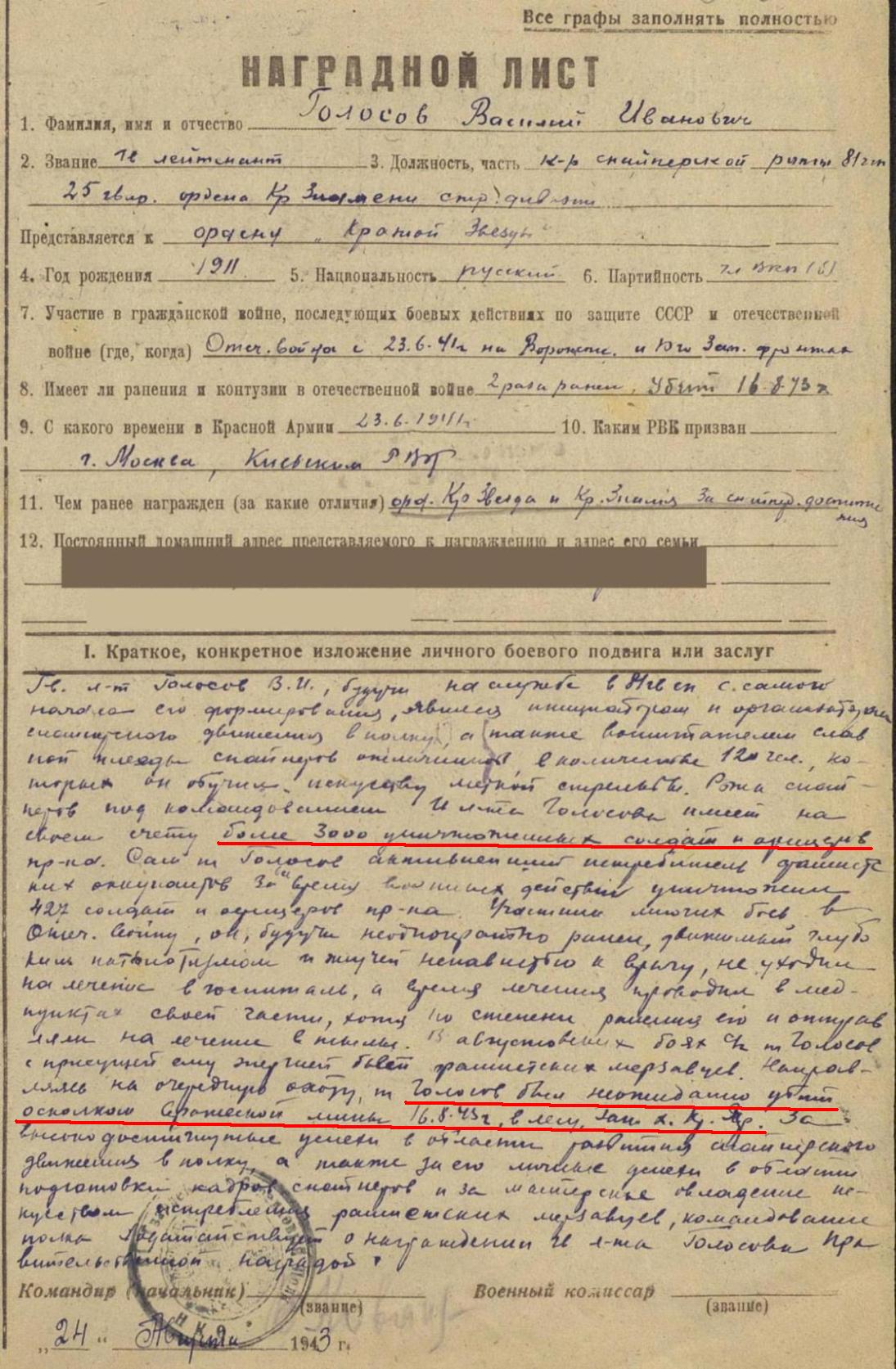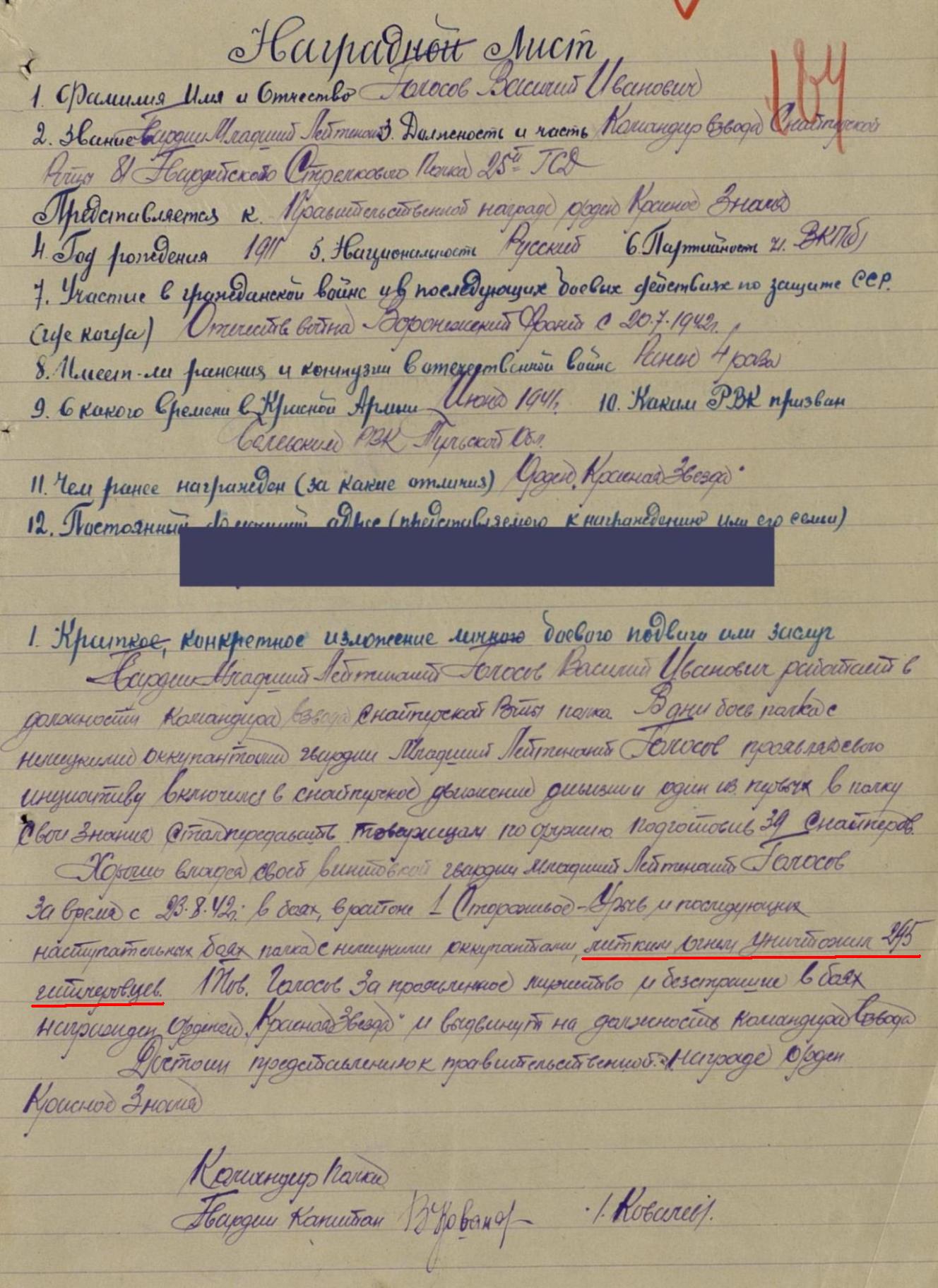 Его высший профессионализм подтверждают 422 убитых врага; эффективность советской программы обучения снайперов подтверждает меткая стрельба и крайне редкие промахи.