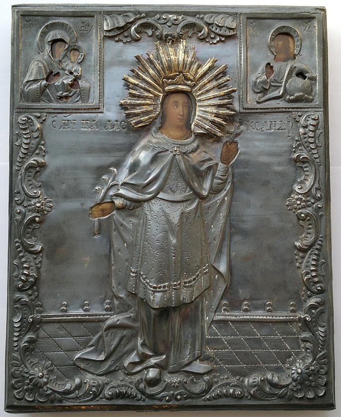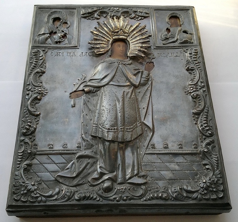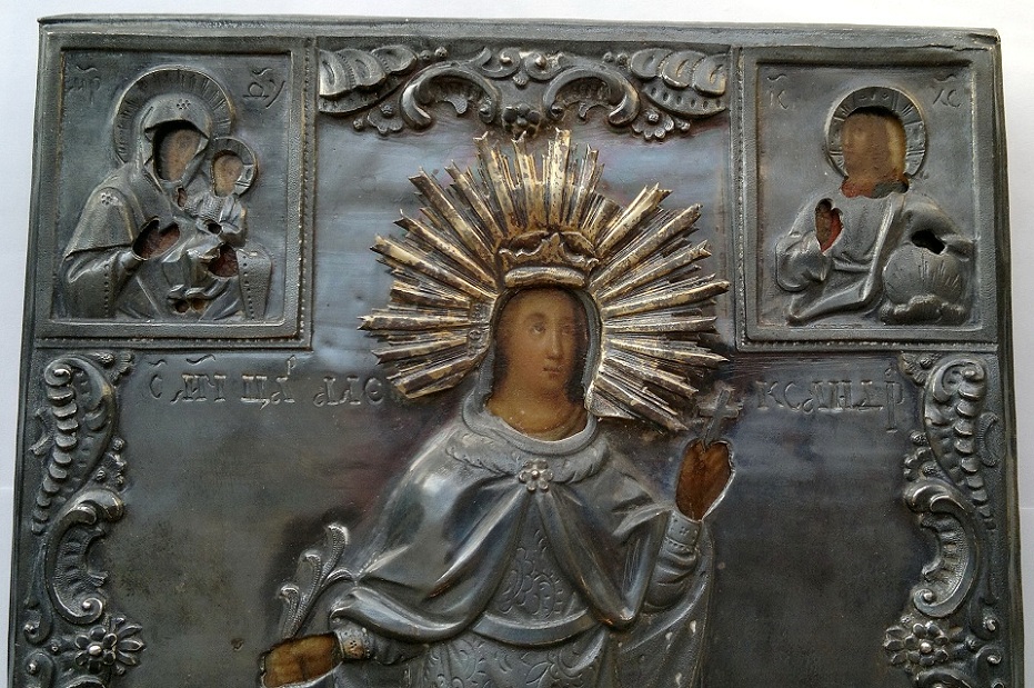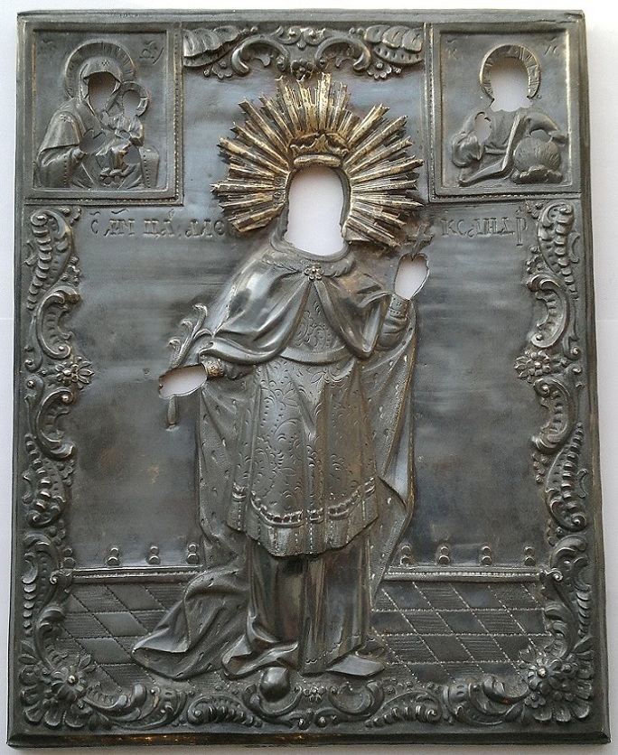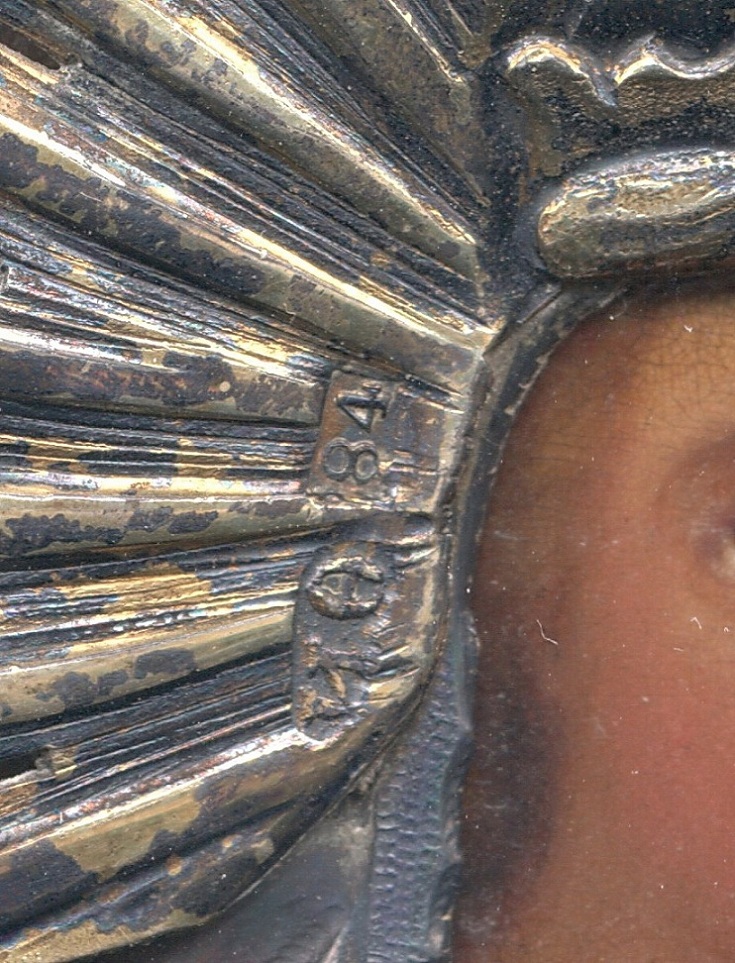 Оклад - серебро 84пр., чеканный; очень хороший, высокий рельеф. По живописи : масло ;