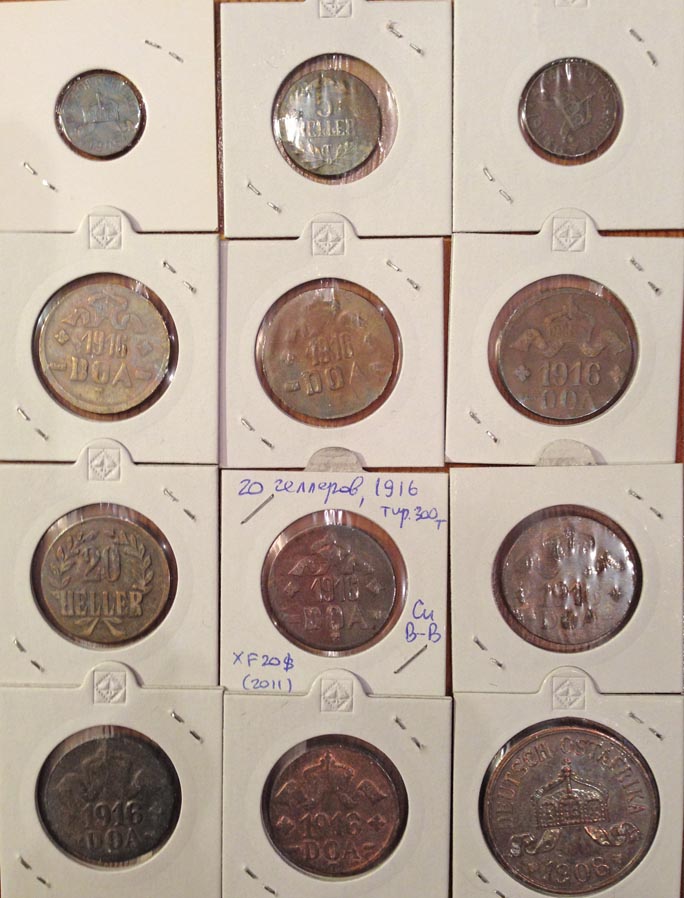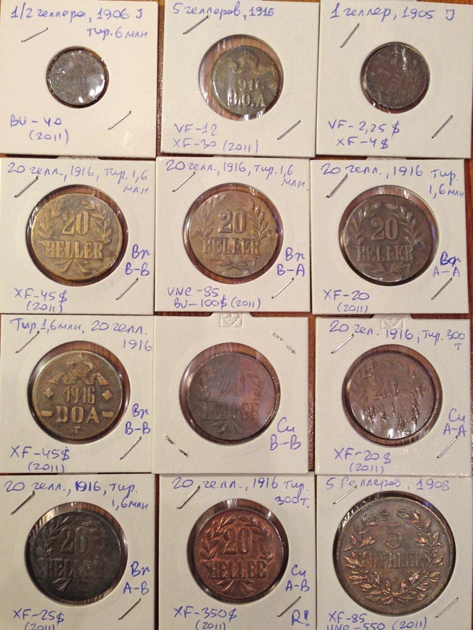 Среди монет 20 Геллеров - есть редкие (по типам). Повторов нет.
