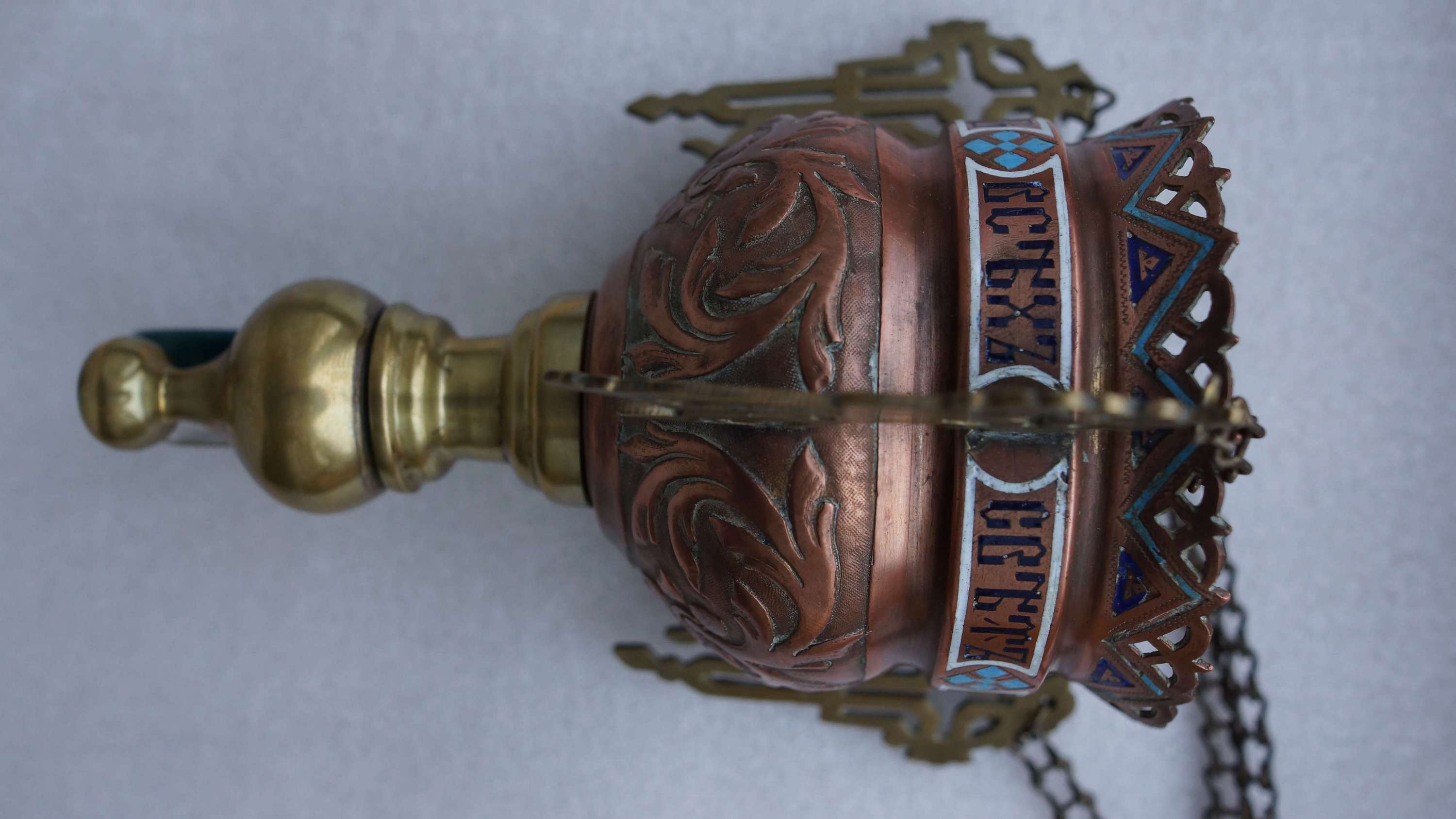 Лампада церковная, украшенная полихромными эмалями. Российская Империя, XIX век.