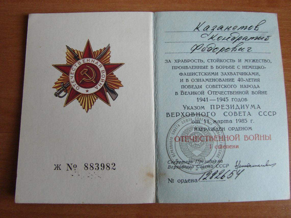 Комплект на л-та Казанетова Кондратия Федоровича