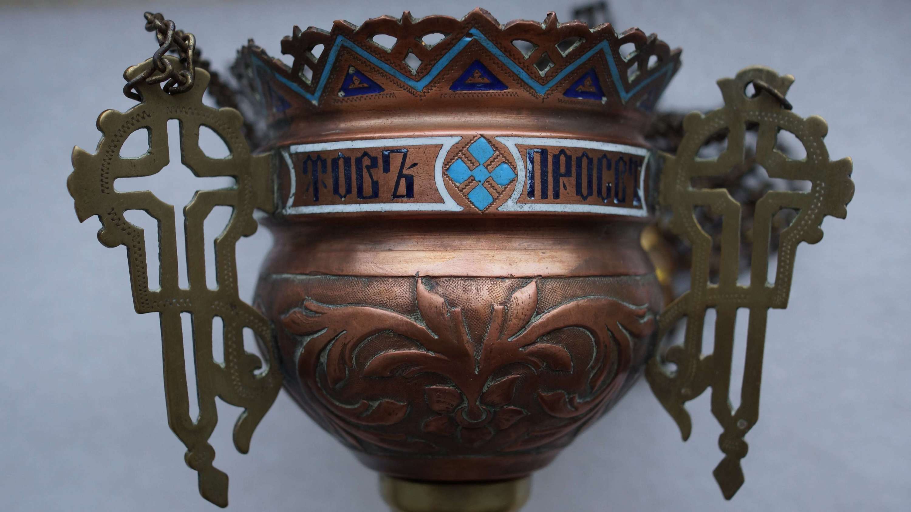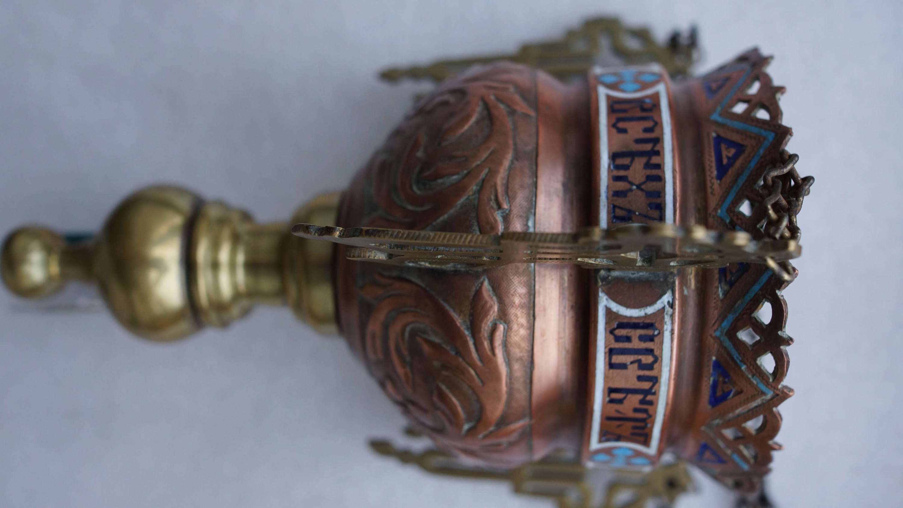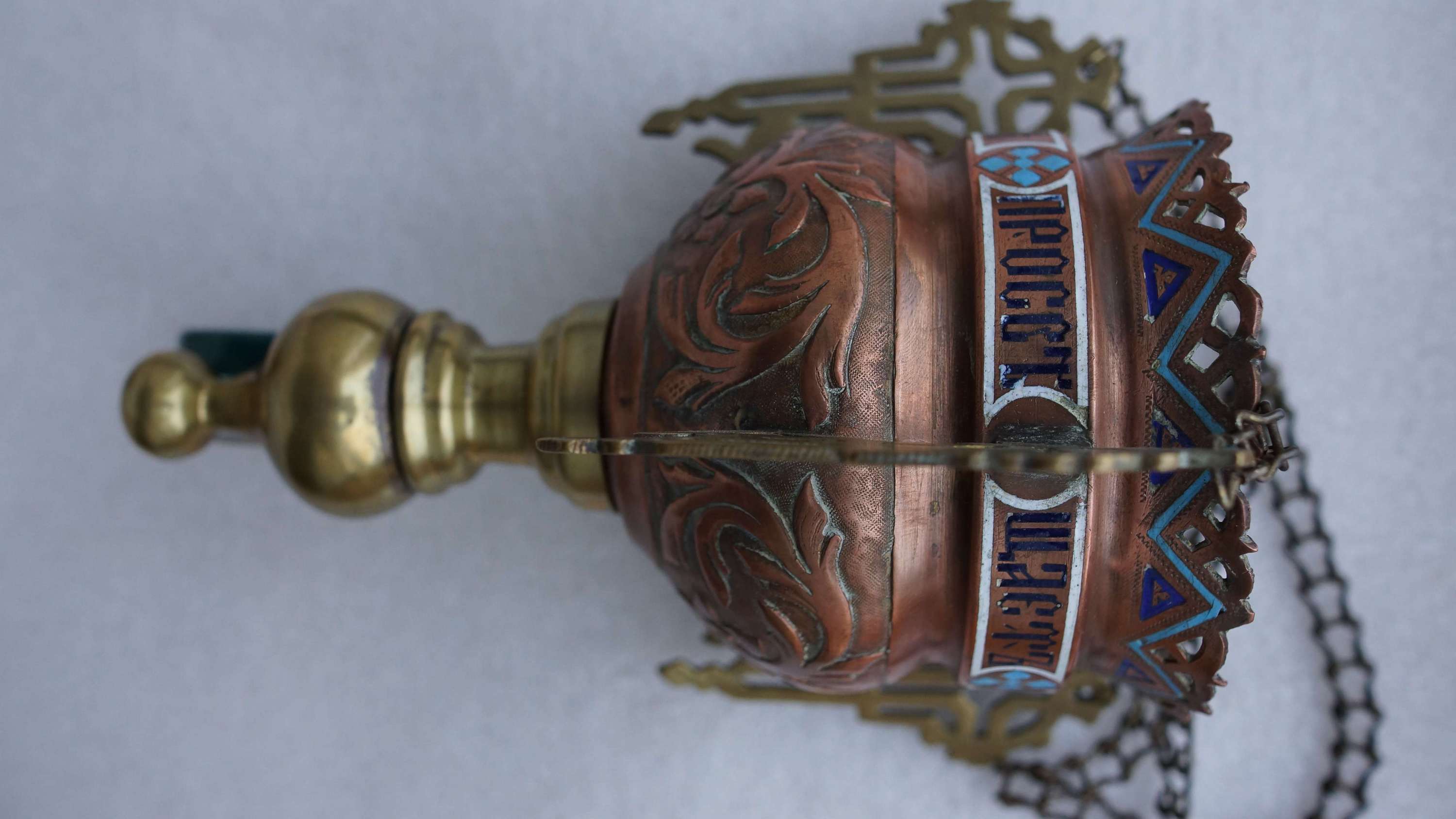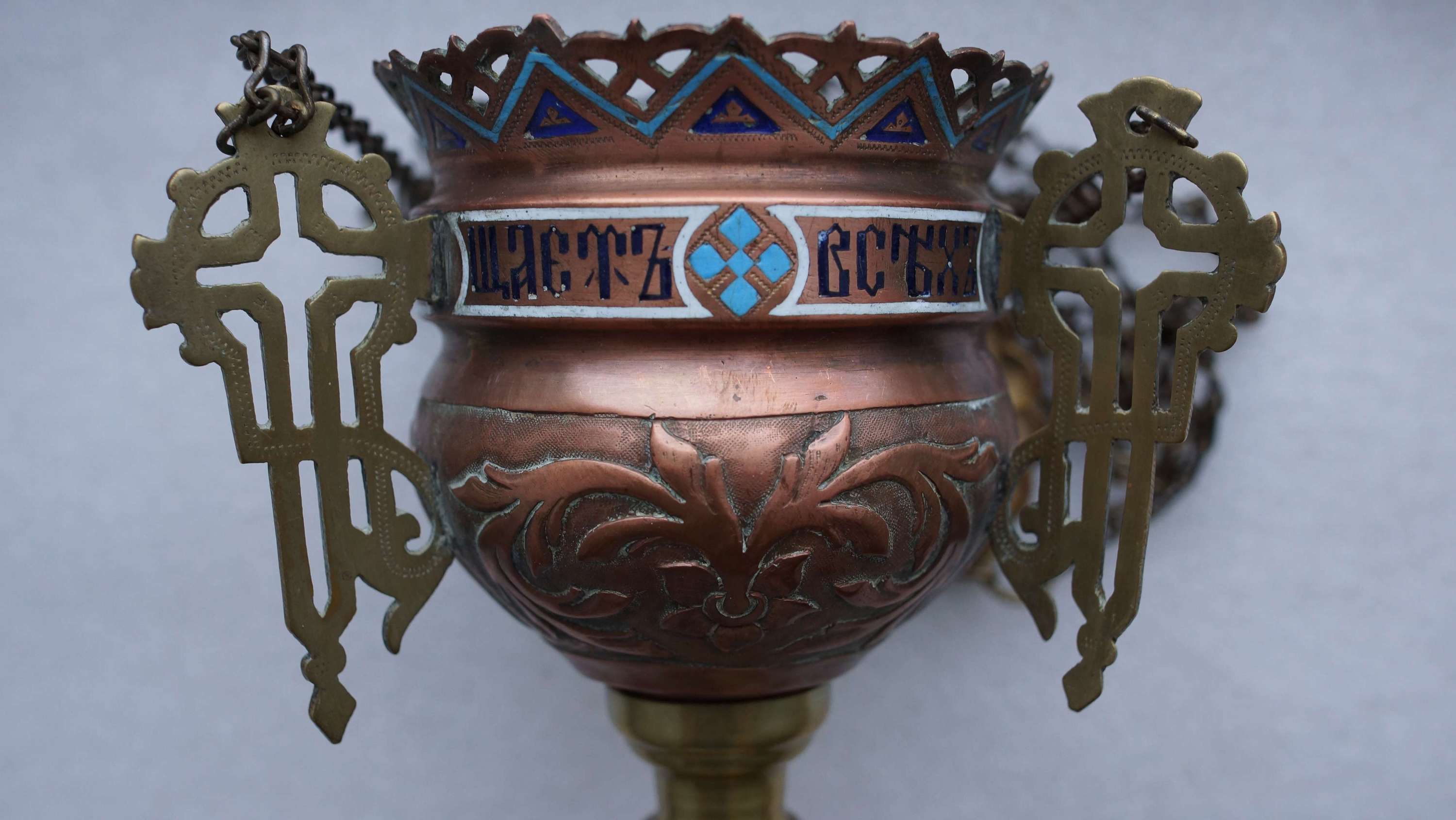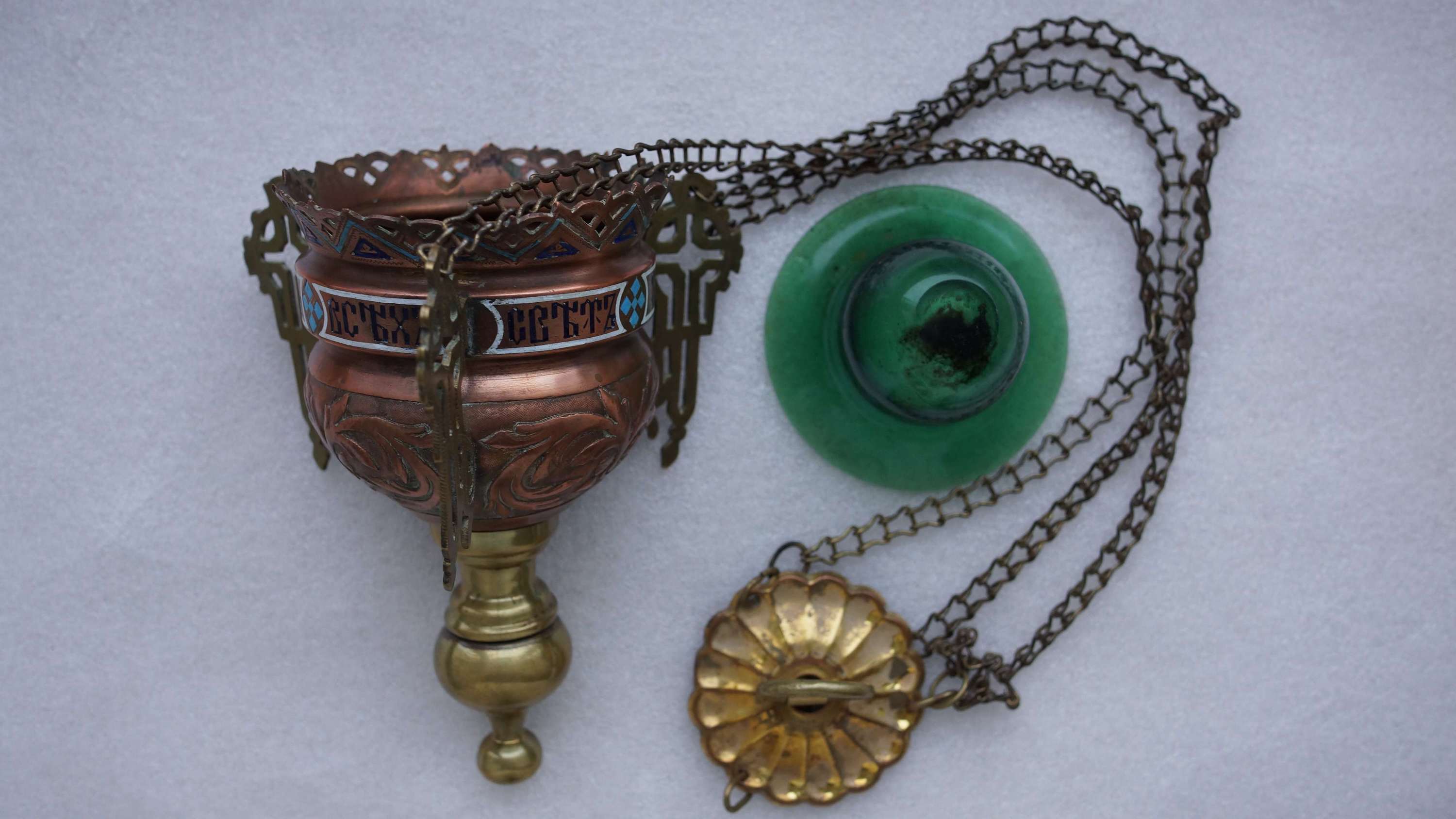 Лампада церковная, украшенная полихромными эмалями. Российская Империя, XIX век.