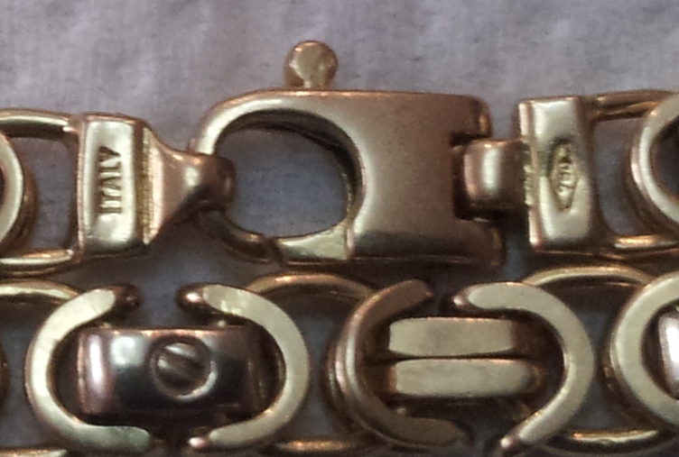Смотрится великолепно. Промежуточные звенья - белое золото. Длина 60 см, ширина 6-7 мм, вес 80 грамм. Предложите в уях.