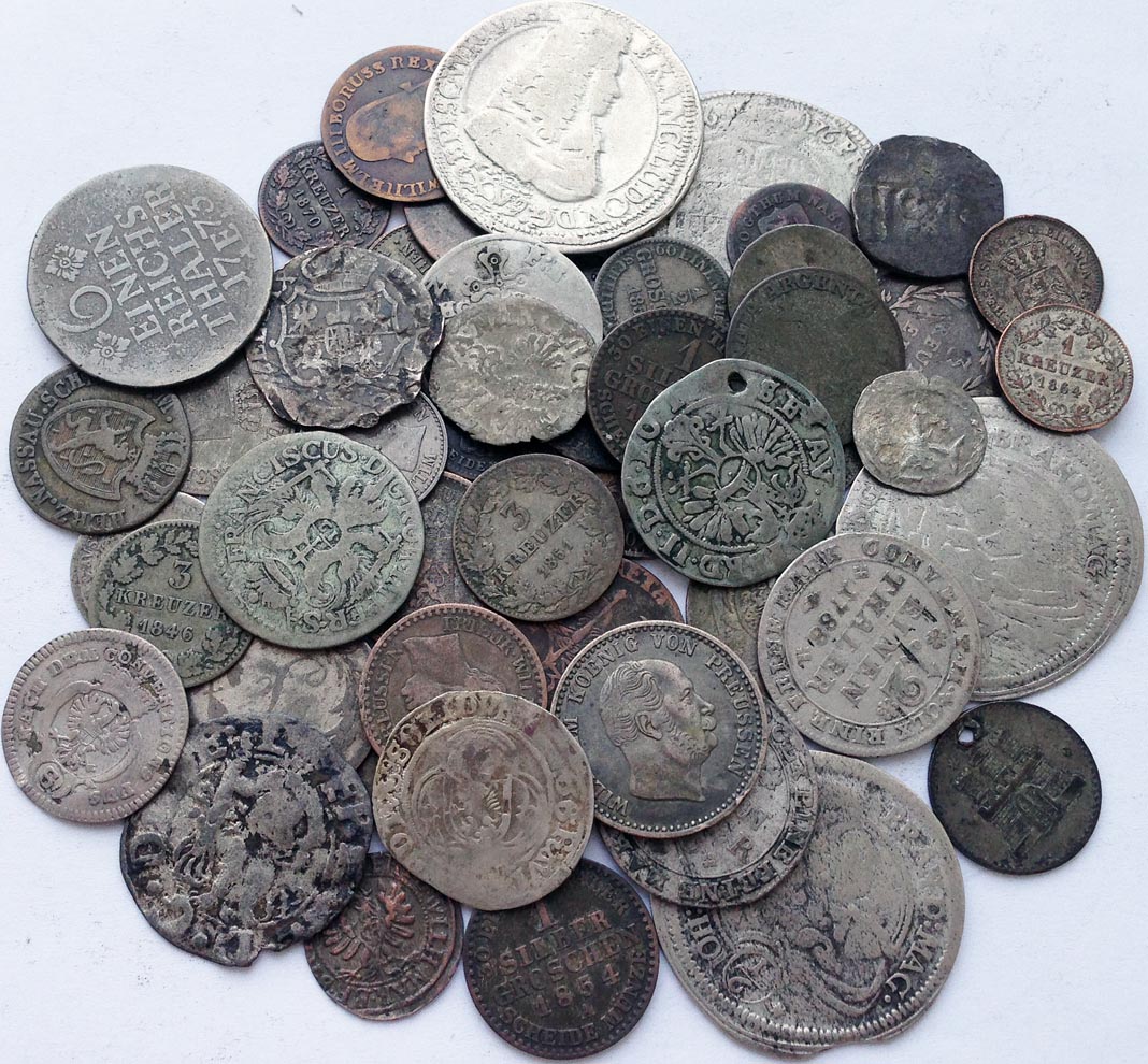50 серебряных монет XVII-XIX век, Германия (разные земли).