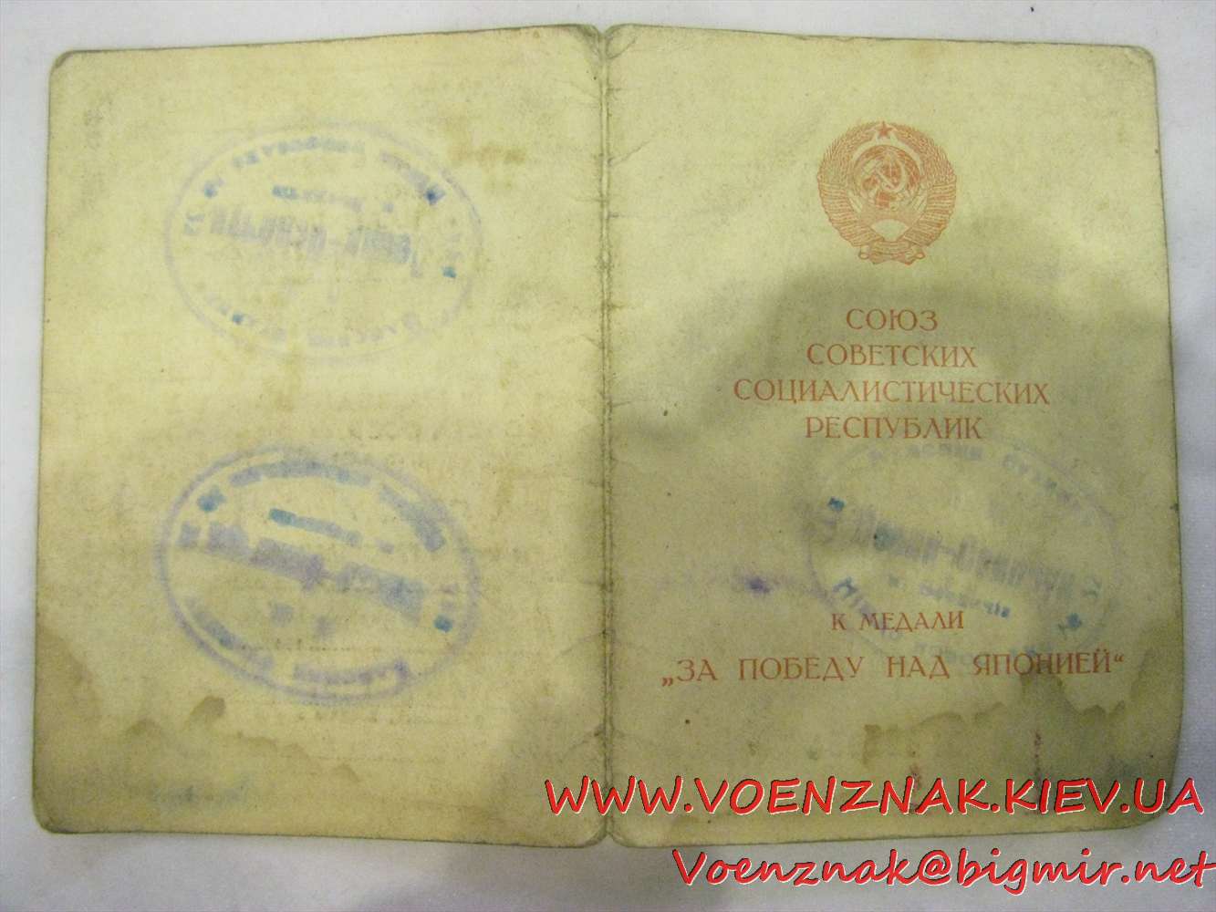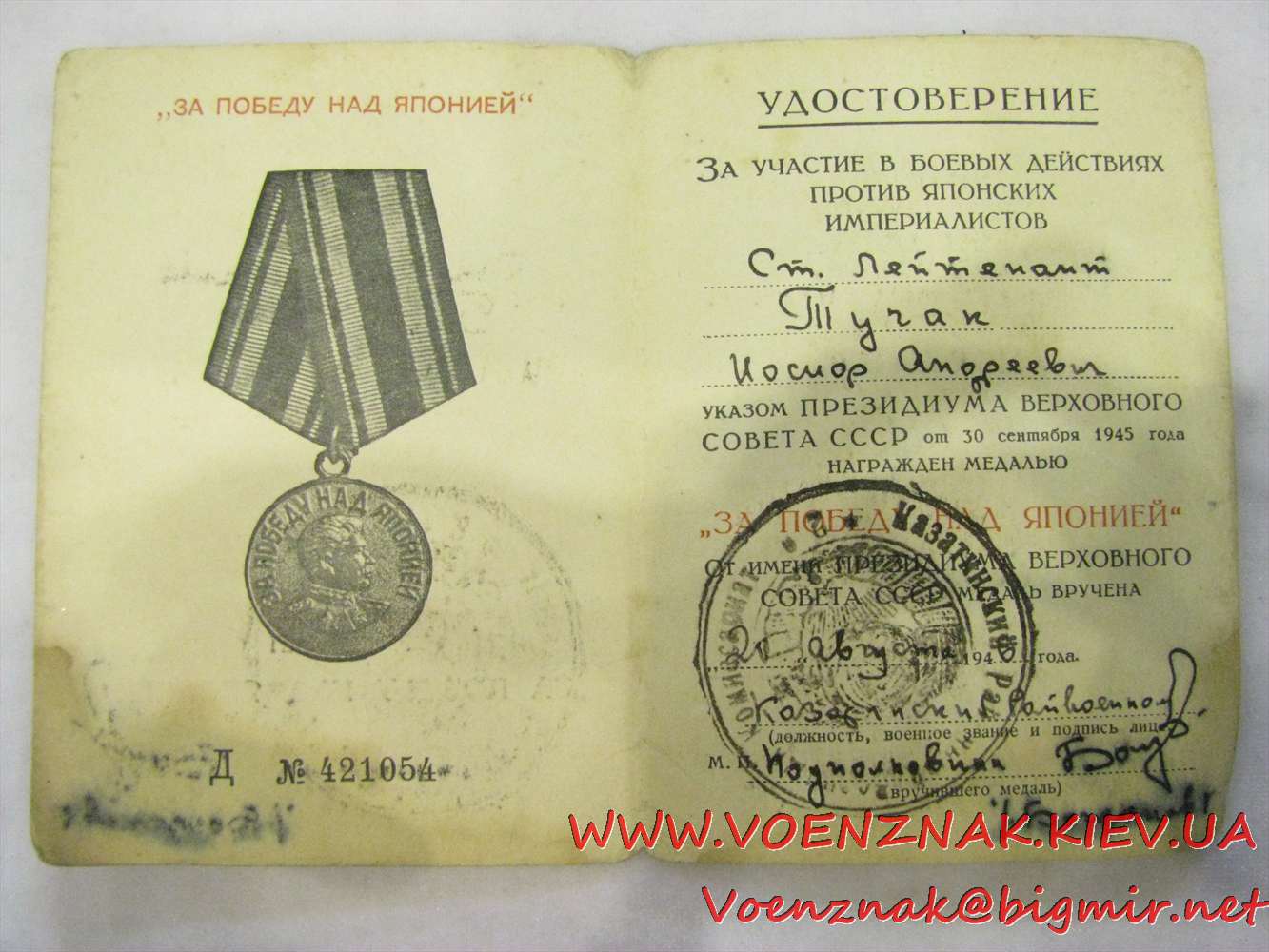Комплект КЗ "пятка": №197374: медаль за победу над Японией с документами