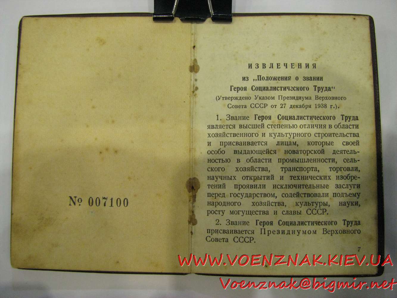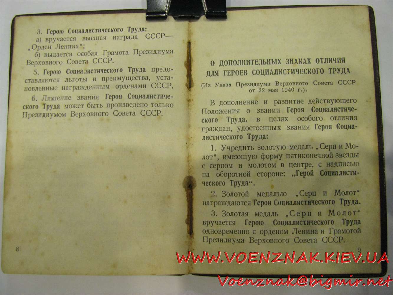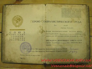 Комплект документов на Героя соц. труда: большая грамота, малая грамота, орденская книжка