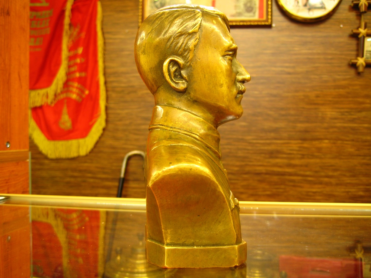 Подскажите по данному бюсту-времен третьего рейха или современная копия? Голова цельнолитая,остальное листовой металл,высота 15 см.