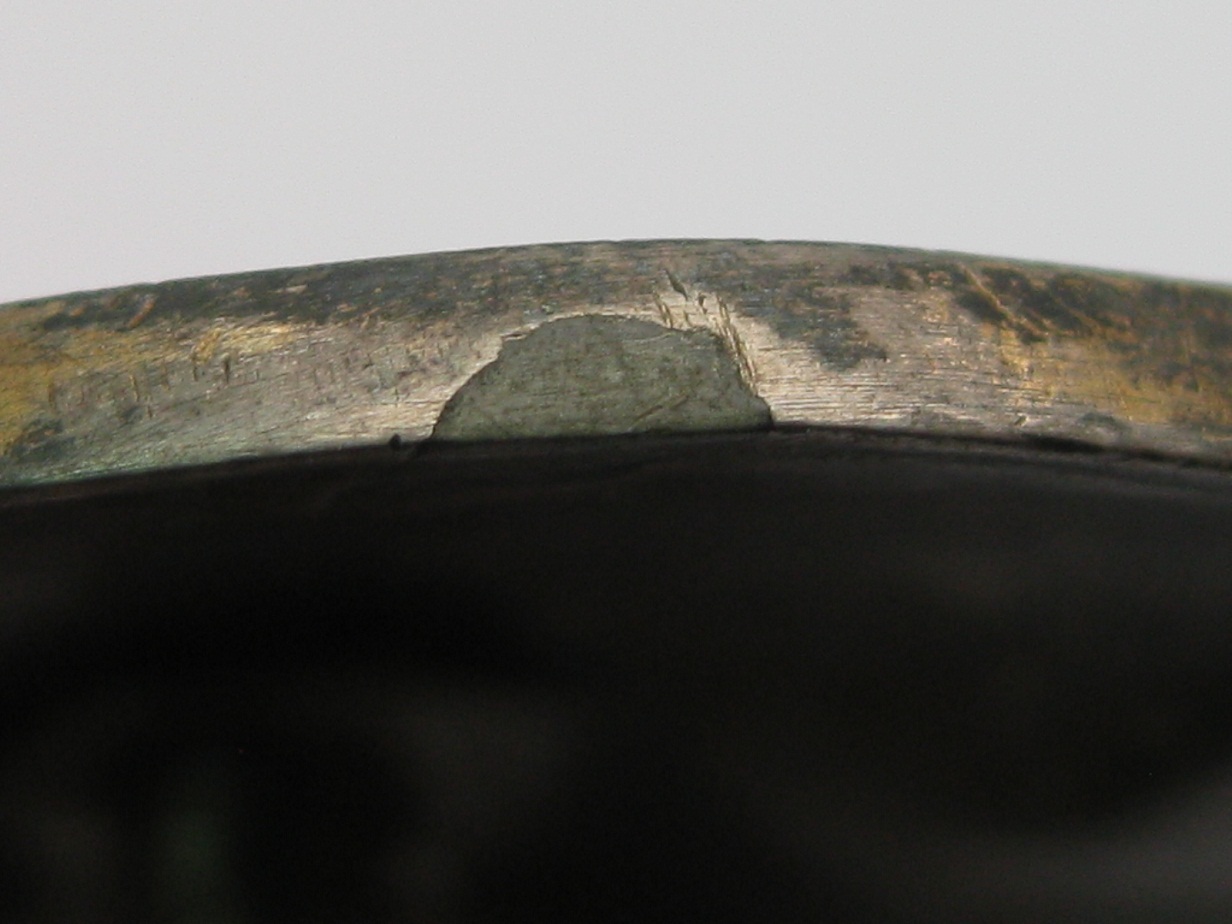 Недостатки: восстановленные лучи на 3 и 9 часов, заделанная проточка под подвесное крепление на реверсе, восстановлен винт (качественно!), т.к. родного мне видится 5 или 6 витков.