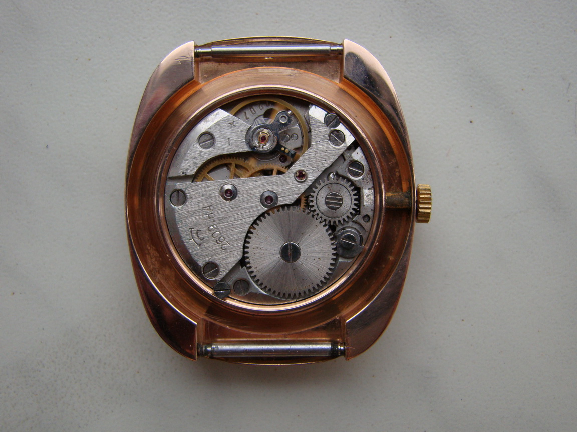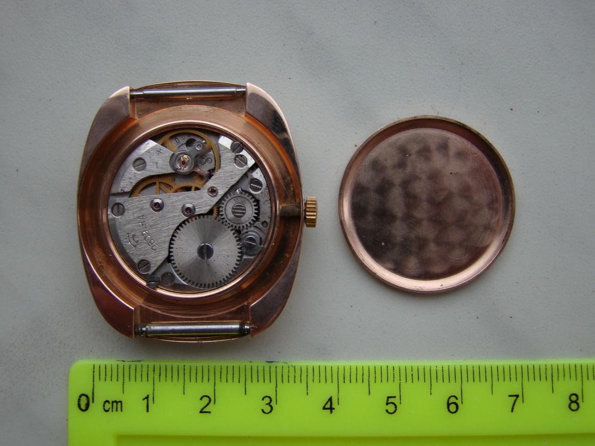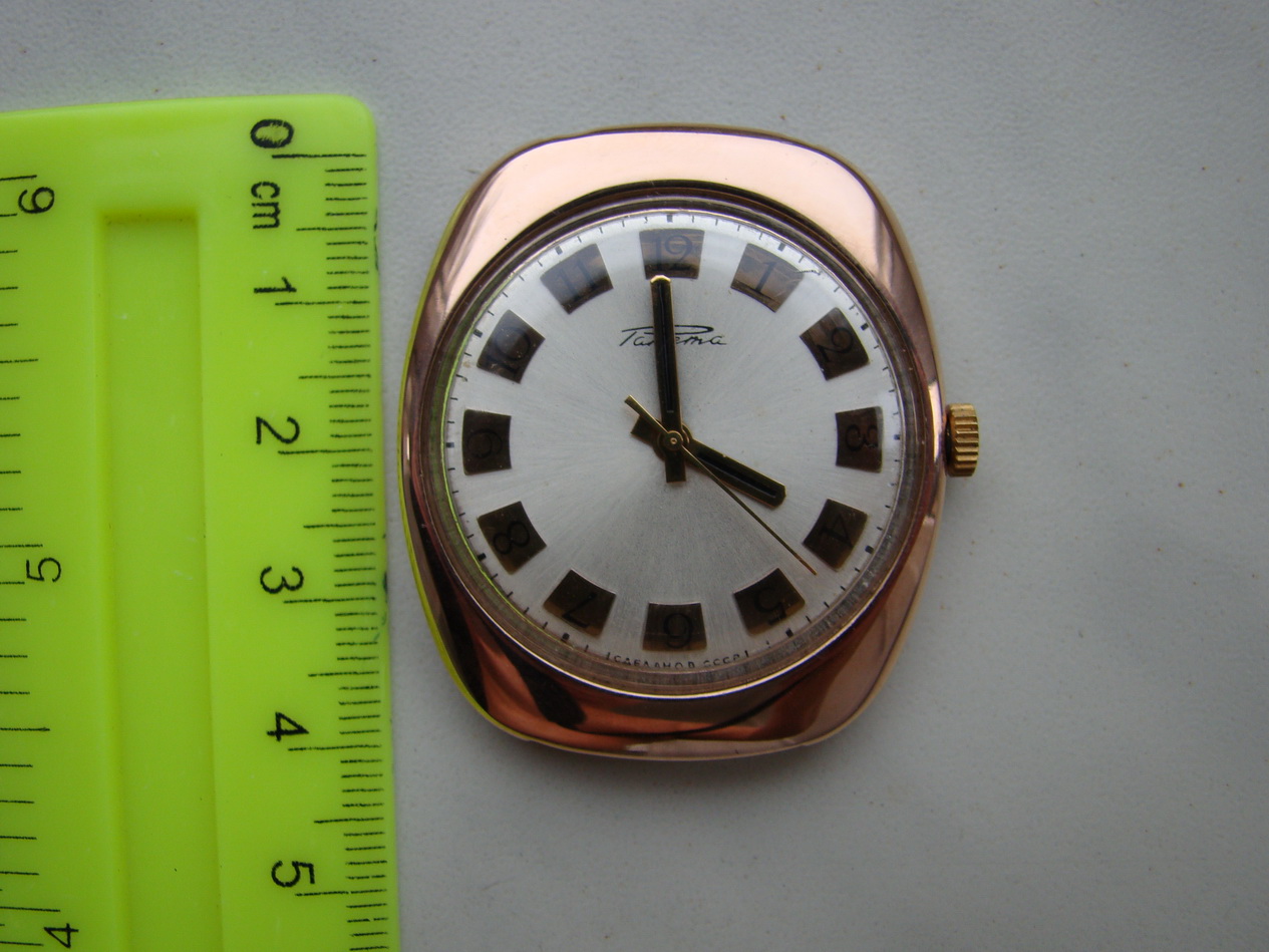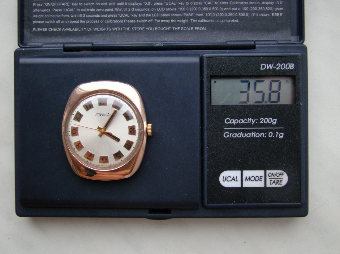 Чистый вес золотого содержания (Au-583) = 20 г. Размеры контура корпуса часов: 41 мм.х 36 мм.