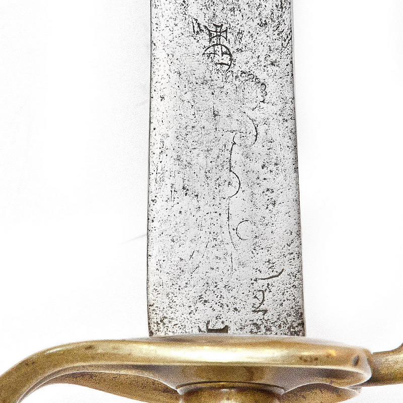 Сохранность в общем неплохая, клинок несколько "устал". Тем не менее, с одной стороны вензель хорошо читается, с другой почти полностью затерт. Год выпуска 1792 (?)