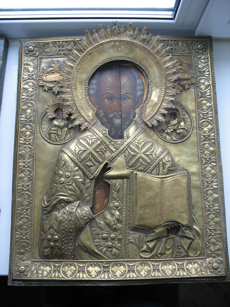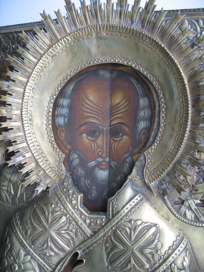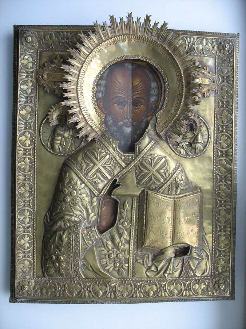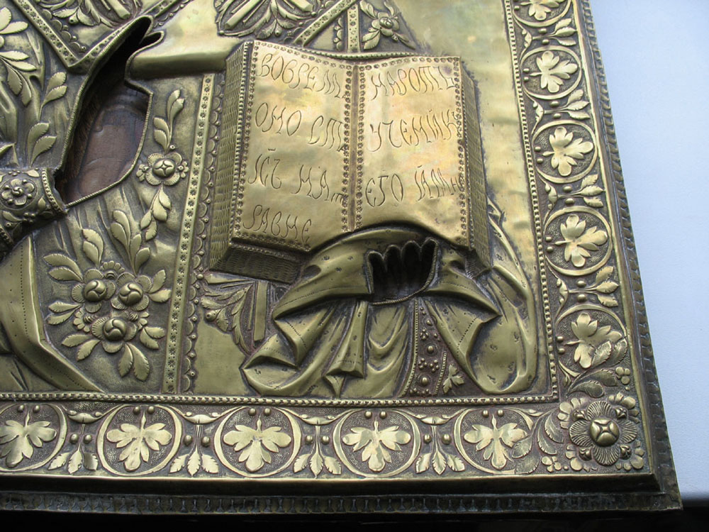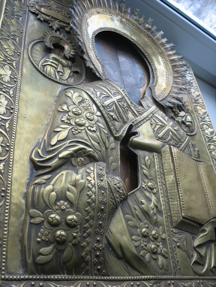 Размер 54\44\3см Оклад толстый,рельеф высокий.вес -1800,боковые картуши и страници на книге-накладные...Мощная икона,живьём намного эффектней...без вмешательств ....доп сканы спрашивайте...