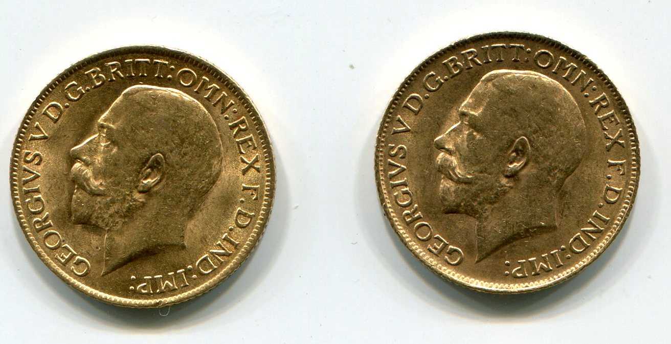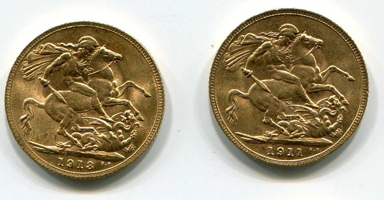 Соверены 1911 и 1913 портрет Георга (8 гр, 917 пр)
