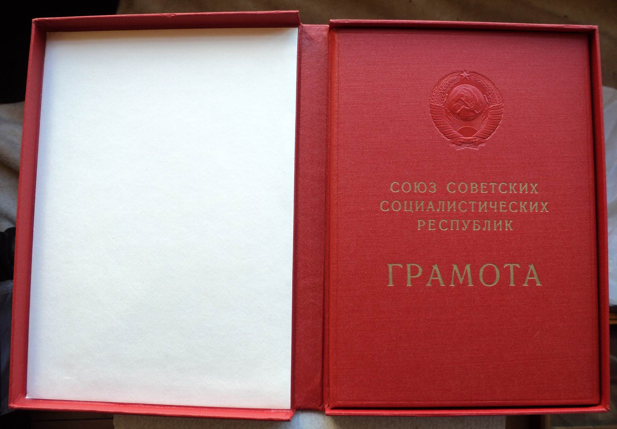 Лично видел в таких «упаковках» грамоты о вручении войсковым частям боевого знамени с конца 1960тых – 1980тые гг.