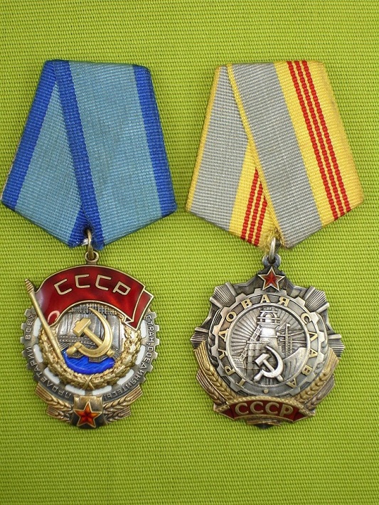 Лот из двух орденов. Орден Трудового красного знамени 117306, Орден трудовой славы 50528. В отличном состоянии.