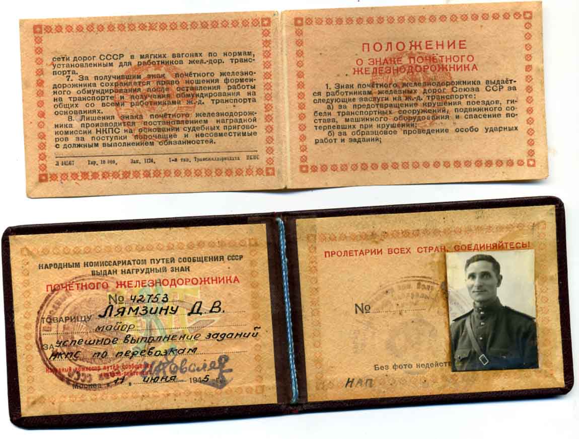 Почетный железнодорожник с доком 42753