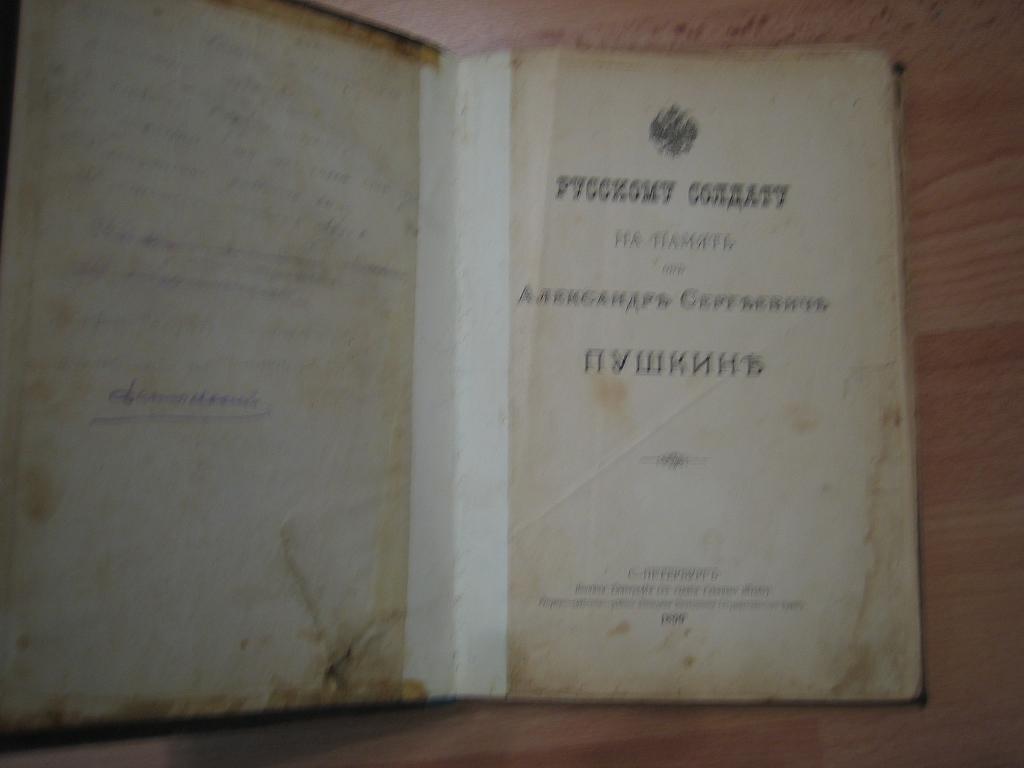 Русскому солдату на память об Александре Сергеевиче Пушкине. СПБ. 1899г. Военная типография.