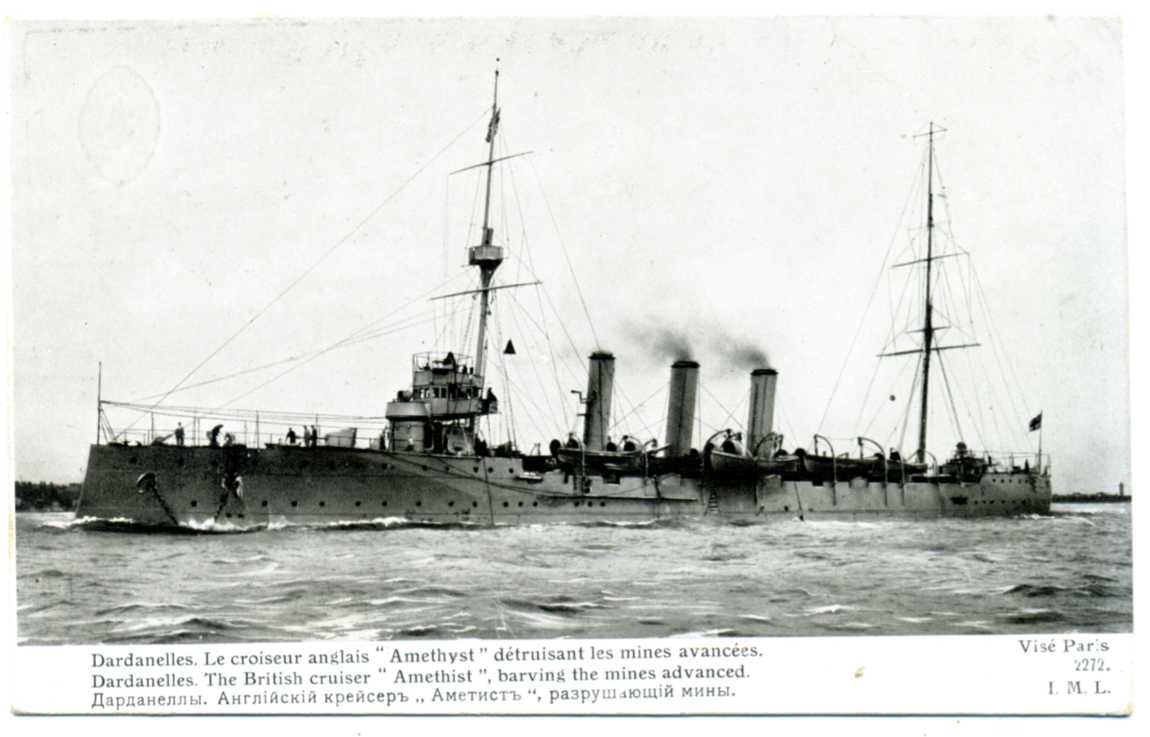 Сколько стоят открытки из серии Морская галерея и английский крейсер Аметист?