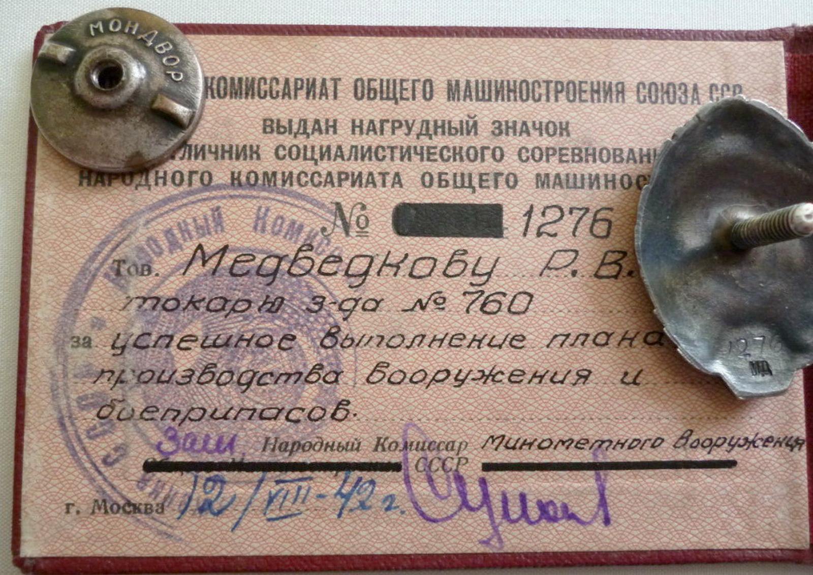 После 1941 г. Наркомат Общего машиностроения СССР переименован в Наркомат Минометного воооружения СССР