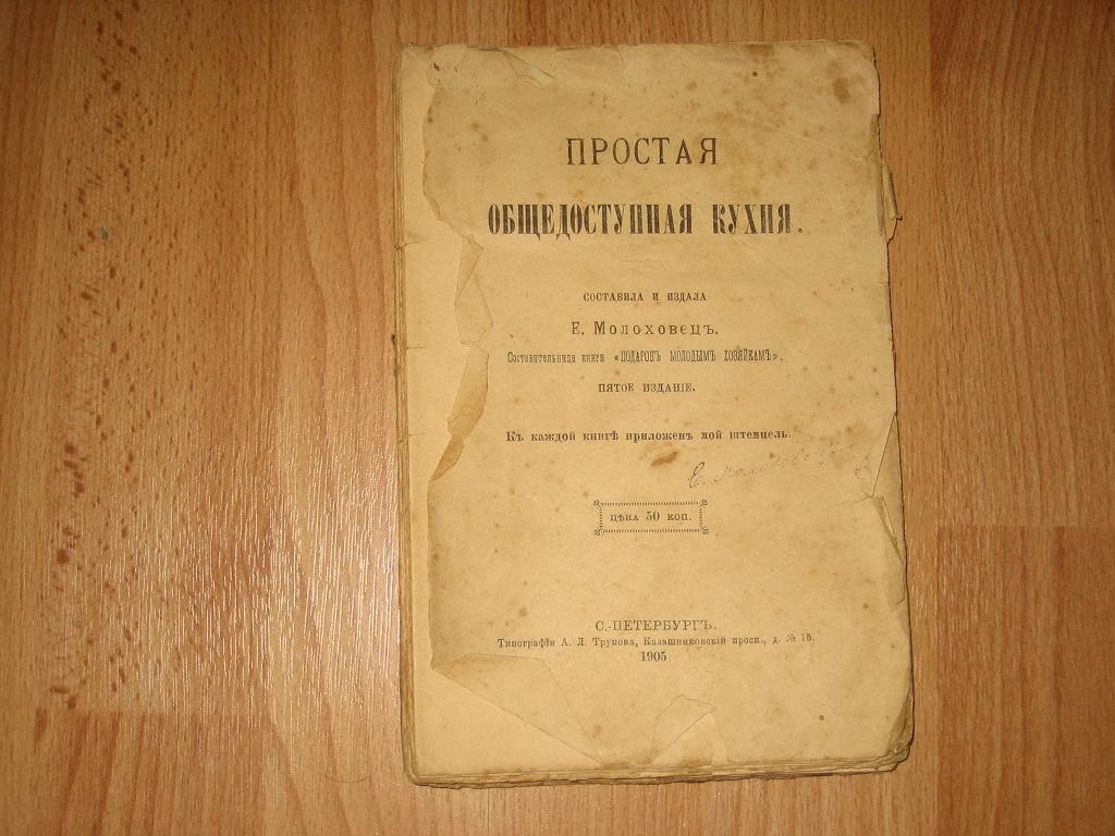 Е.Молоховец. Простая общедоступная кухня. СПб, 1905 год, м/пер.