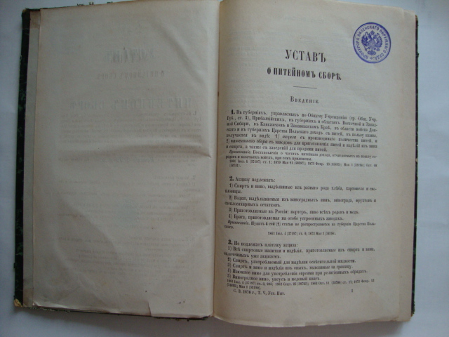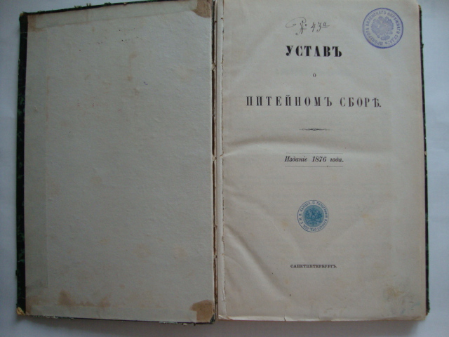 Устав о питейном сборе. 1876г. Типография II-го отд. соб. Е.И.В. канцелярии. 197 стр.