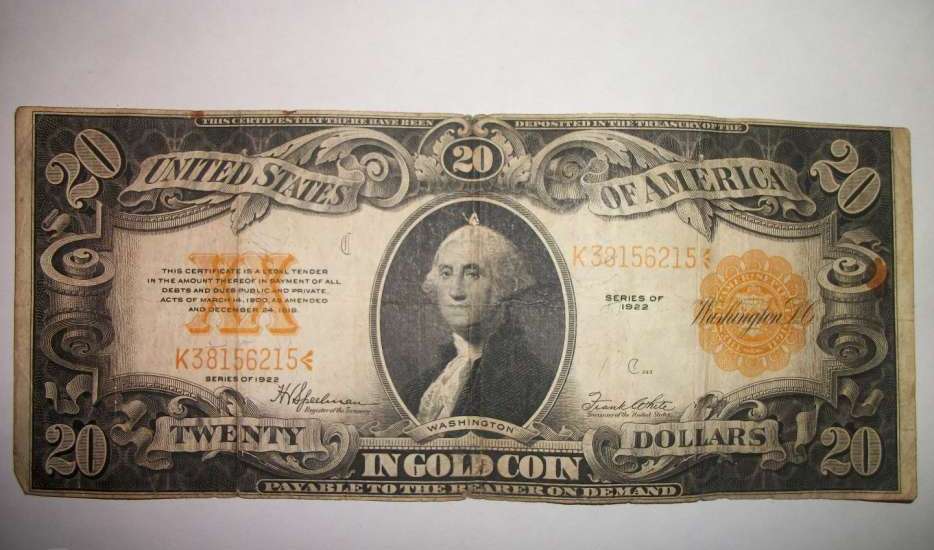 Предложу банкноту 20 долларов 1922 года (золотой сертификат ) в коллекционном сохране// без свищей !