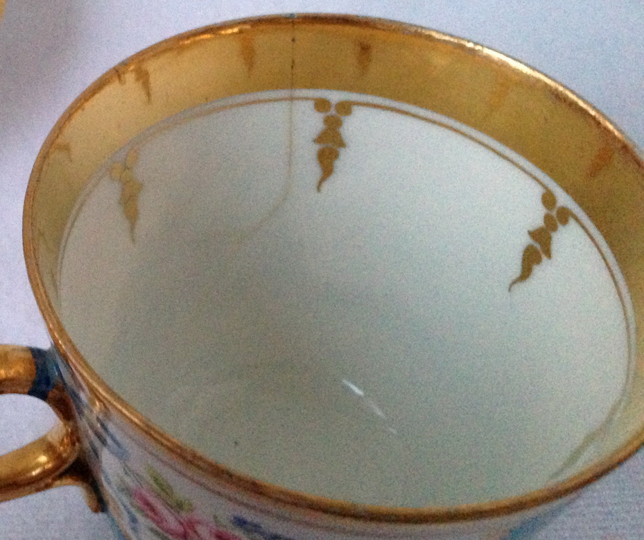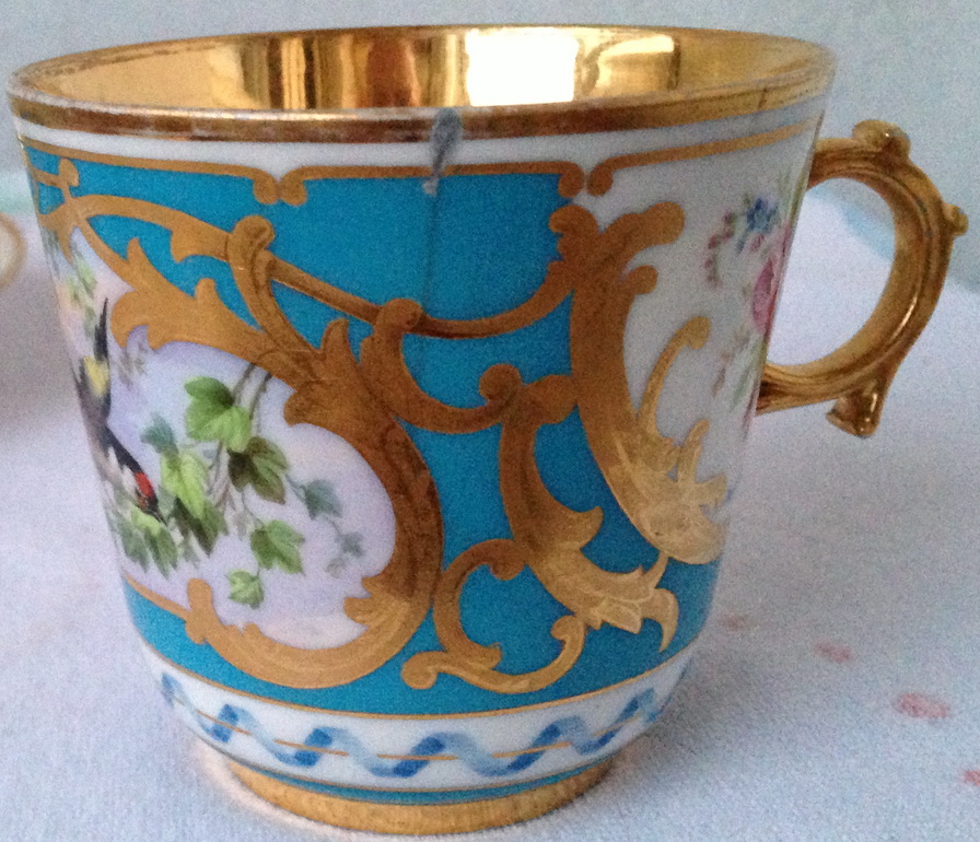 На чашке есть трещинка,на блюдце два сколика.