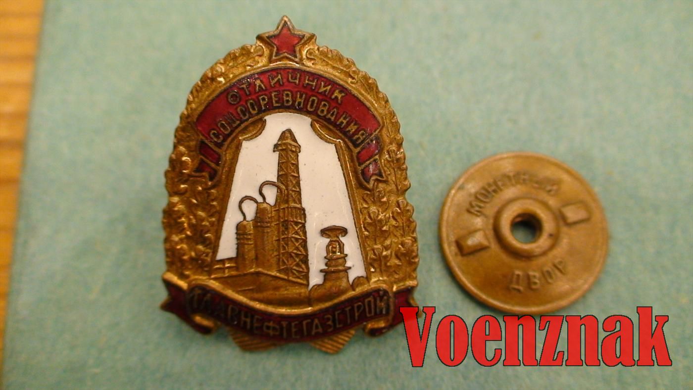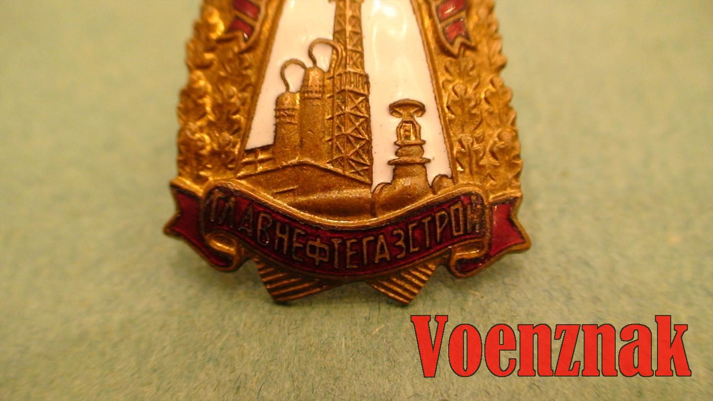 Знак "Отличник соцсоревнования "Главнефтегазстрой"" с №1586, в люксе