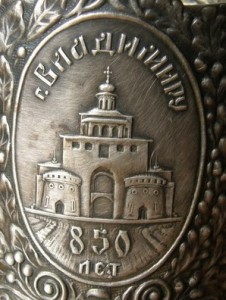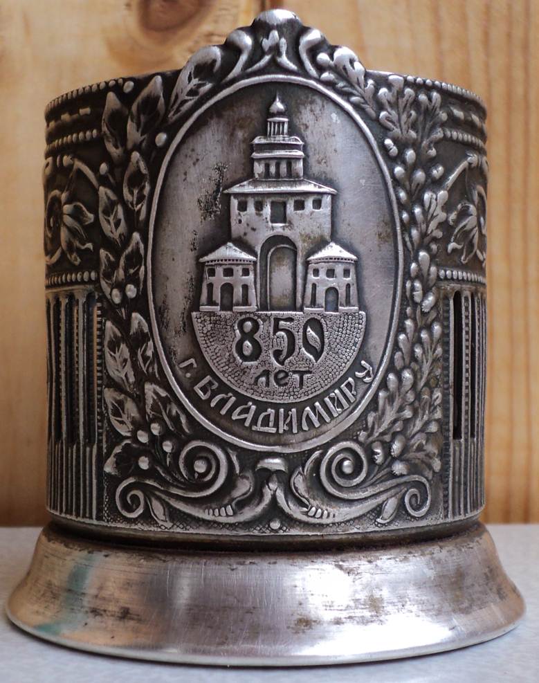Обычно попадаются подстаканники с надписью «г Владимиру» с верху.