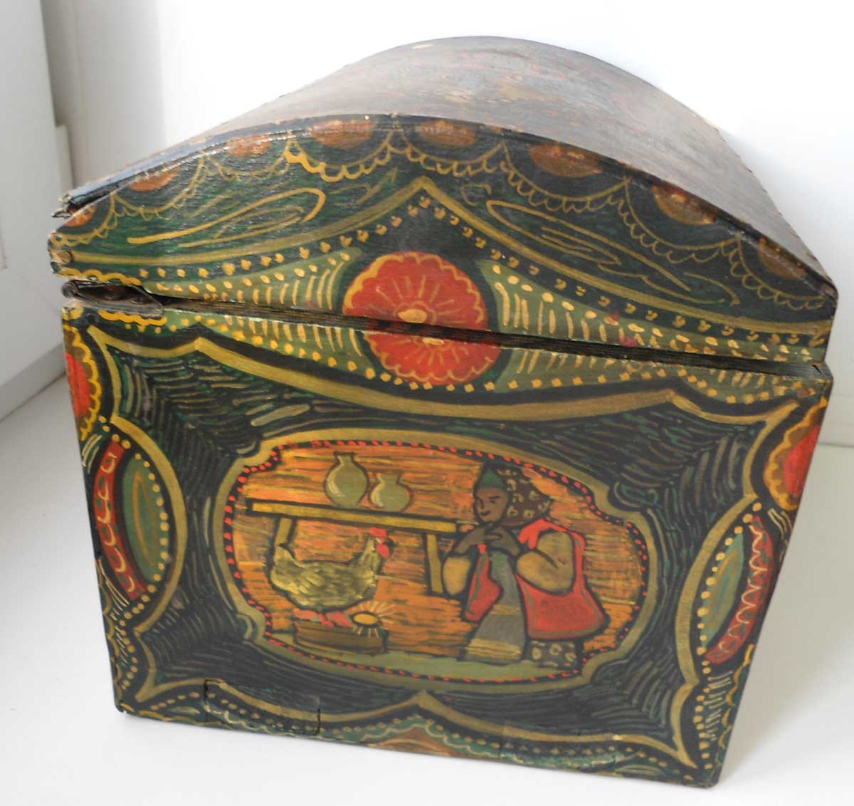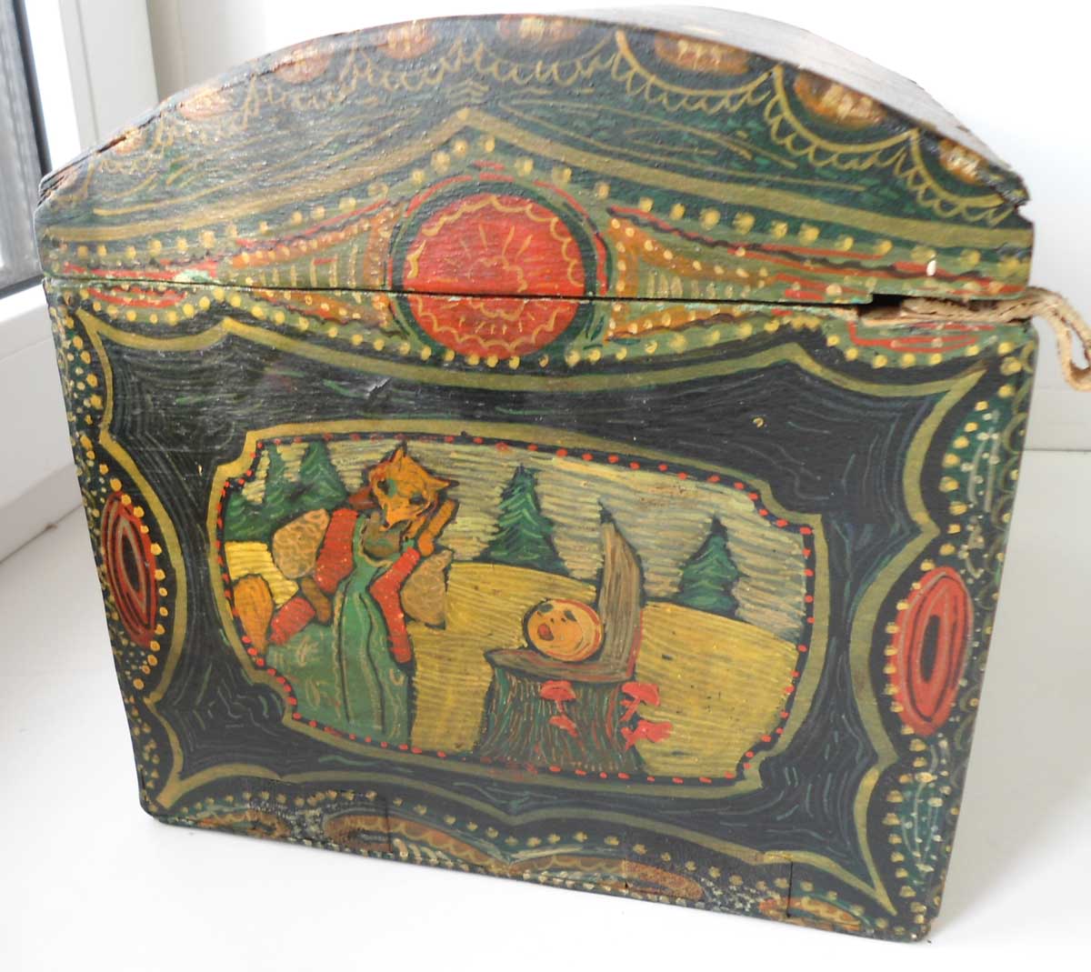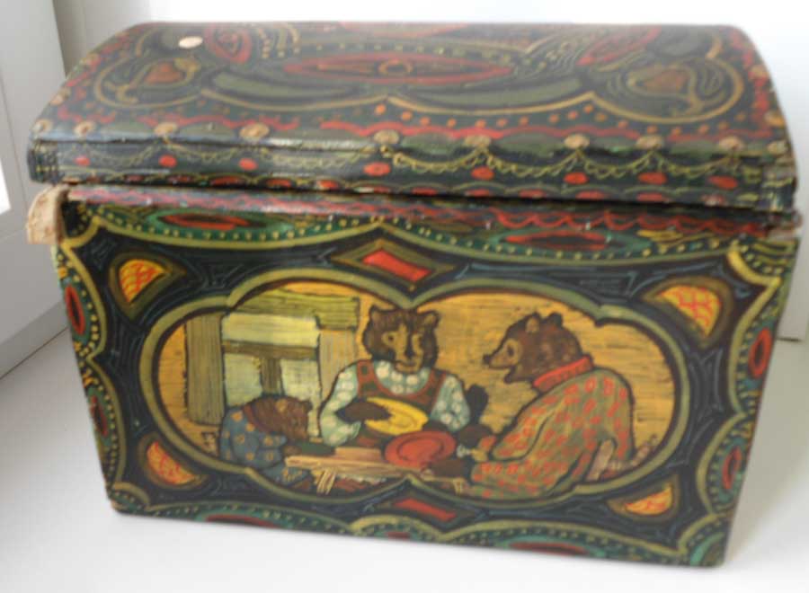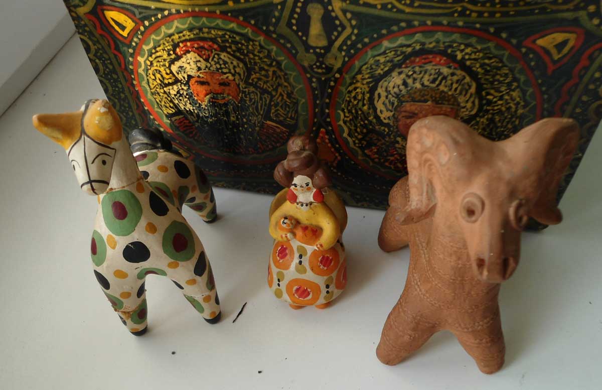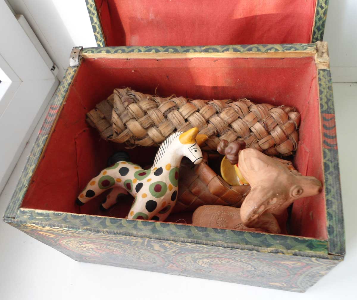 внутри 3 старых глиняных игрушки и береста