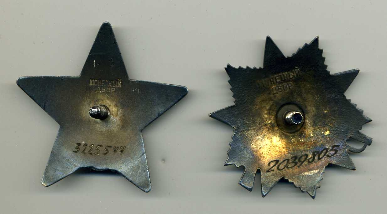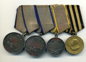 Комплект на одного человека : К\З № 3225544 ( на острее верхнего луча микрочешуйка) 2 ОТВАГИ , Б\З , ВЫСЛУГА( серебро) + ОВ1юб.,
