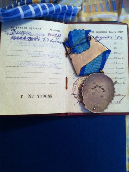 ,ДОКУМЕНТ ИМЕЕТ ДЕФЕКТЫ :НА НАДПИСИ"тРУДОВОЕ КРАСНОЕ ЗНАМЯ" НАПИСАН НОМЕР ТЕЛЕФОНА ,ВИДНО НА ФОТО,И НА САМОЙ ПЕРВОЙ СТРАНИЦЕ КОРРЕКТОРОМ ЗАМАЗАНО НЕСКОЛЬКО НАДПИСЕЙ ,ПРИКАЗ ОТ 22 АВГУСТА 1954Г