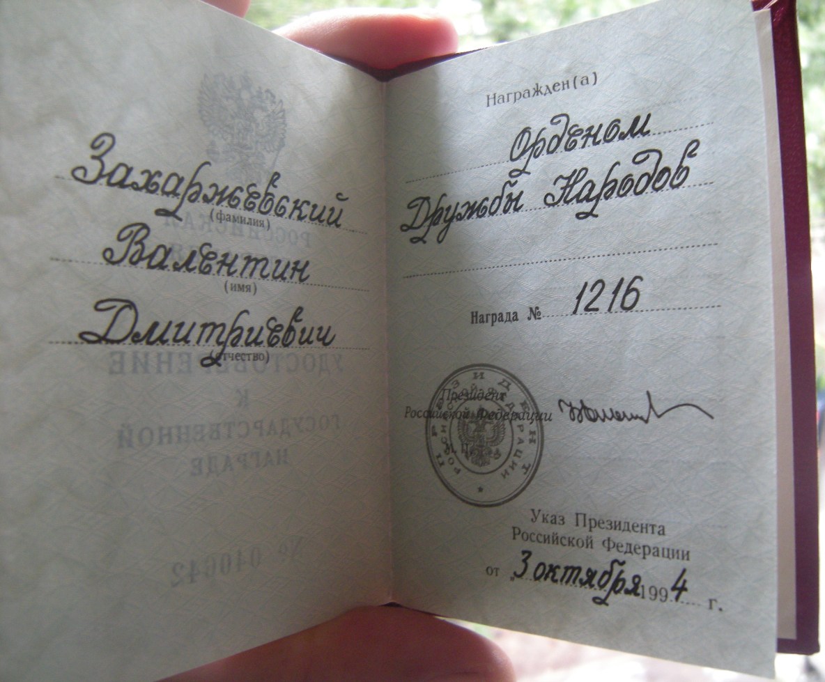 За достигнутые трудовые успехи и многолетнюю работу в акционерном обществе "ГАЗ" наградить ОРДЕНОМ ДРУЖБЫ НАРОДОВ:
