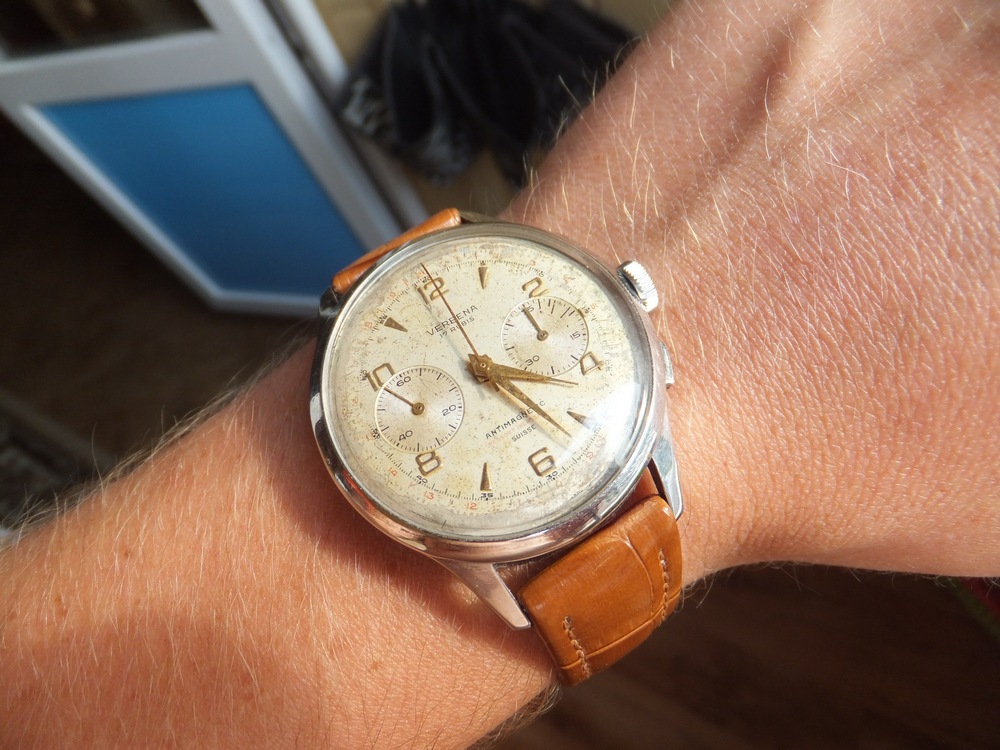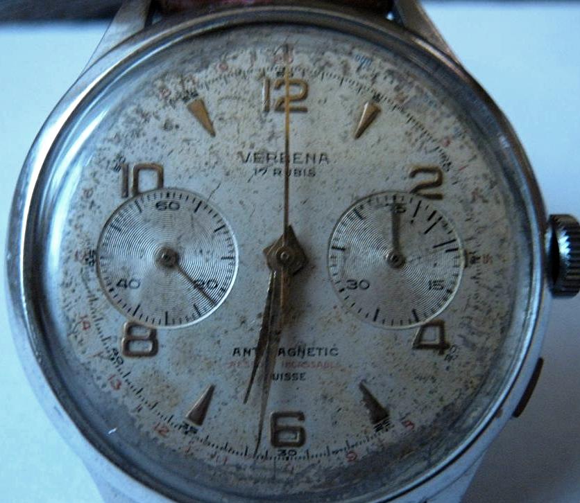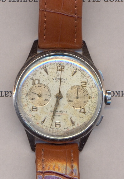 verbena.часы на отличном ходу...функция хронографа живая-но срабатывает не четко! возврат на 12 есть...но при нажатии тормозят обе стрелки одновременно. сброс работает...вообщем нужна профилактика.