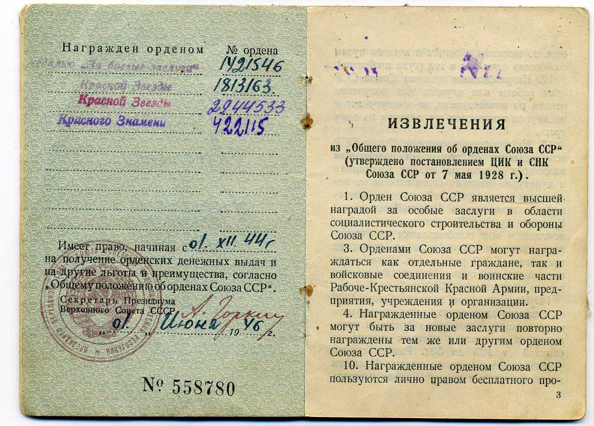 Орденские книжки, удостоверения к медалям, Грамоты, удостоверения личности, извещения, справки и другие документы, литература