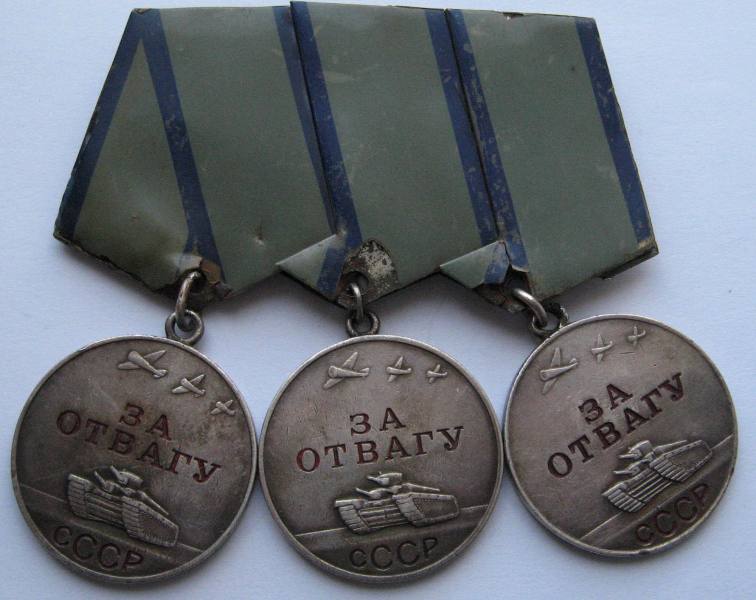 Пришли так. Легенда такая: 2 Отваги были утеряны кавалером и заменены приобретёнными. Возможно сам хозяин набил номера от своих медалей. Увы пробивки нет. На 1-й медали просматриваются родные цифры (17**18); на средней (80821). Промзвенья в олове, Ушки целые. По Украине, дальше Вашими путями. Предложите.