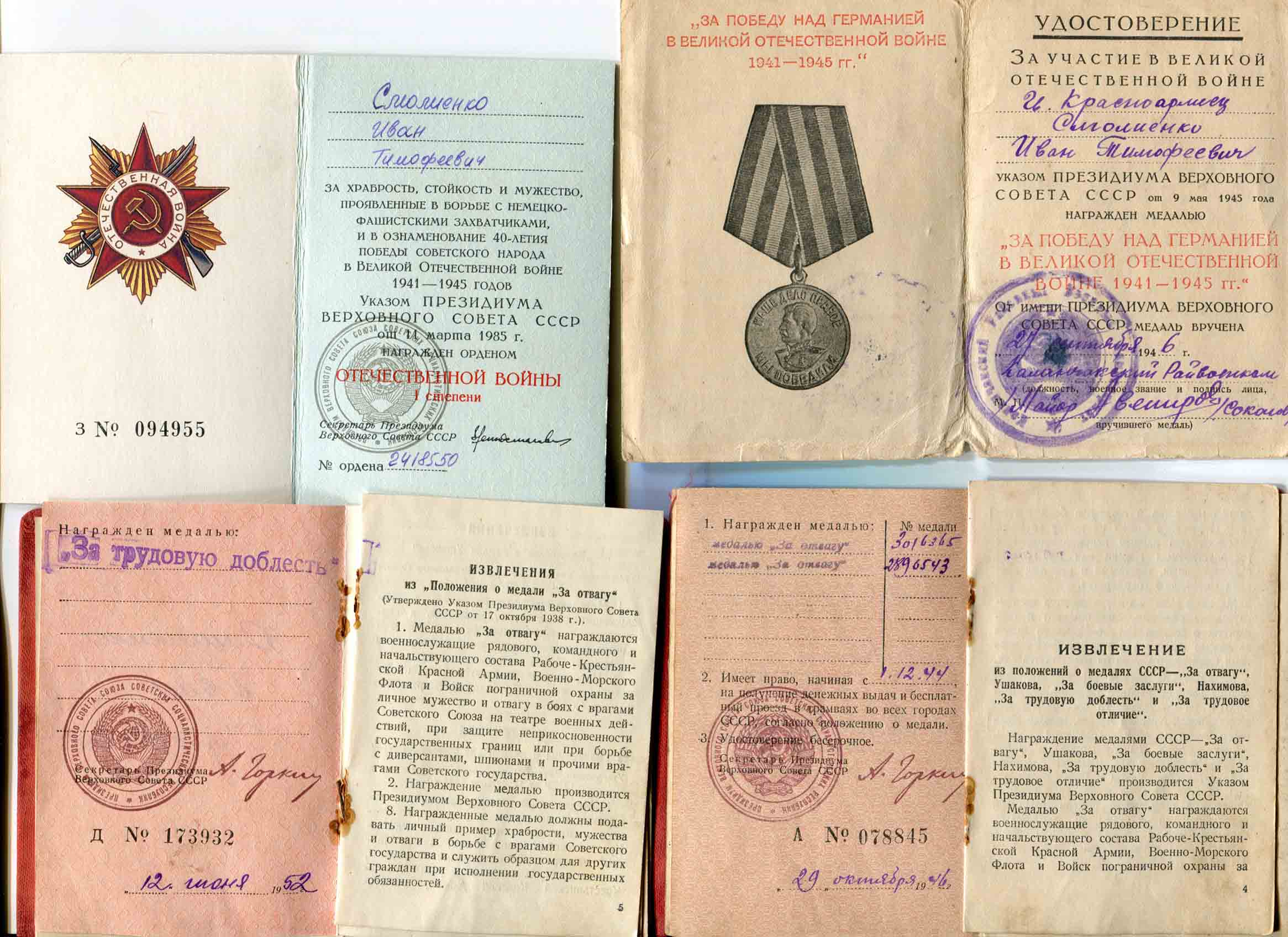 Комплект старшего ездового 2й батареи гвардии красноармейца Смолиенко Ивана Тимофеевича.