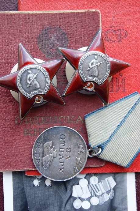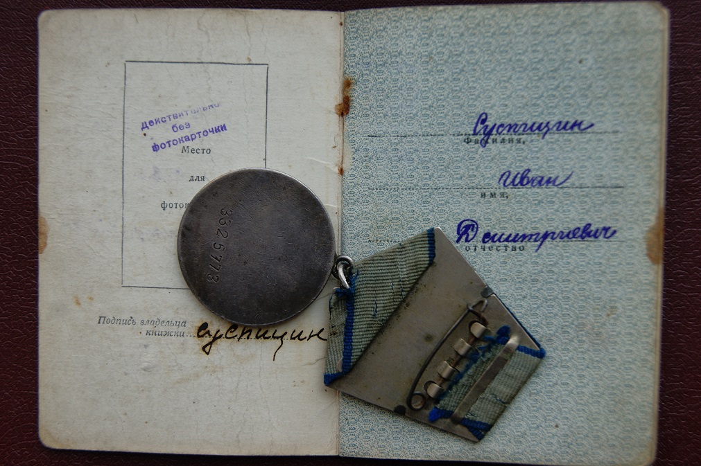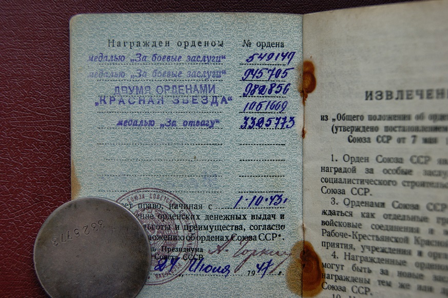 По документам : Скрепки ОК родные с выраженными элементами коррозии , но листы держат отлично ... Cостояние ВБ отличное . Документы без рисунков и надписей не в тему . В наличии фото кавалера выполненное до 1985 г.