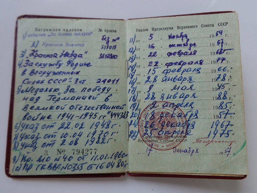 Полный комплект на одного человека с Крабом.. Красным Знаменем.. и Красной Звездой.. все с доками.