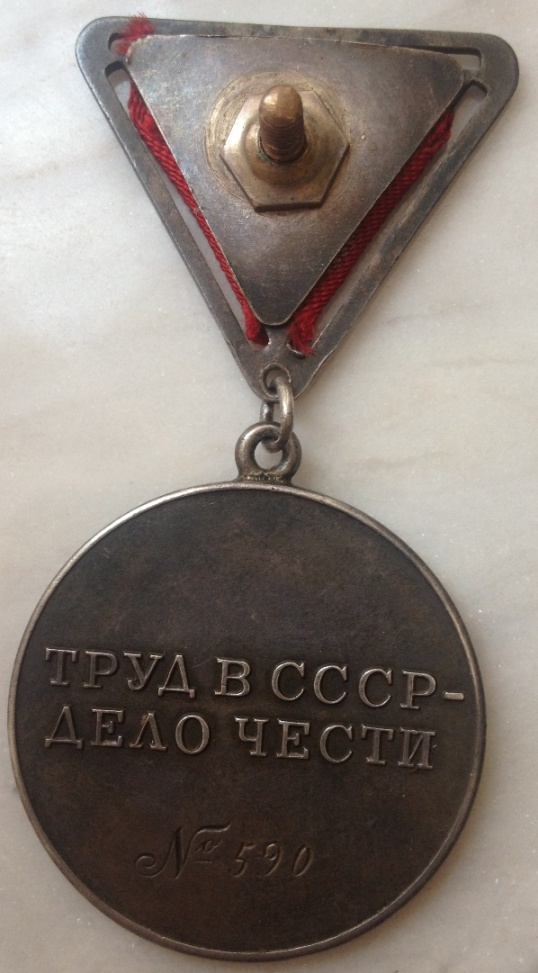 Медали Серп и Молот, За Трудовую Доблесть, За Трудовое Отличие, За Доблестный Труд в Великой Отечественной Войне,За Восстановление Предприятий Чёрной Металлургии Юга, За Восстановление Угольных Шахт Донбасса, За Освоение Целинных Земель, За Строительство БАМ, За Преобразование Нечерноземья РСФСР, За Освоение Недр и Развитие Нефтегазового Комплекса Западной Сибири, Ветеран Труда