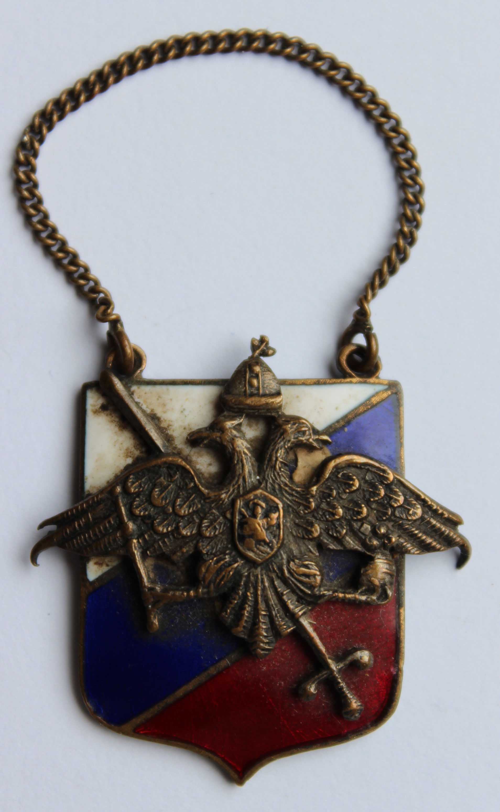 Членский жетон Российского Императорского Союза-Ордена. У Окорокова только описание, у Пашкова была только накладка с жетона. На фото из Интернет пример ношения.