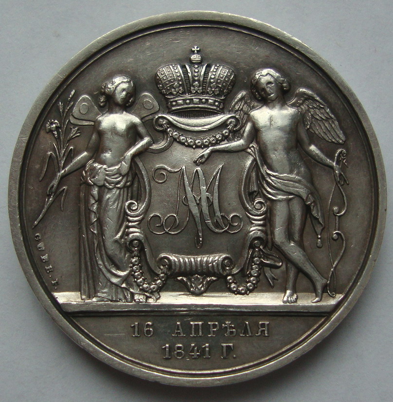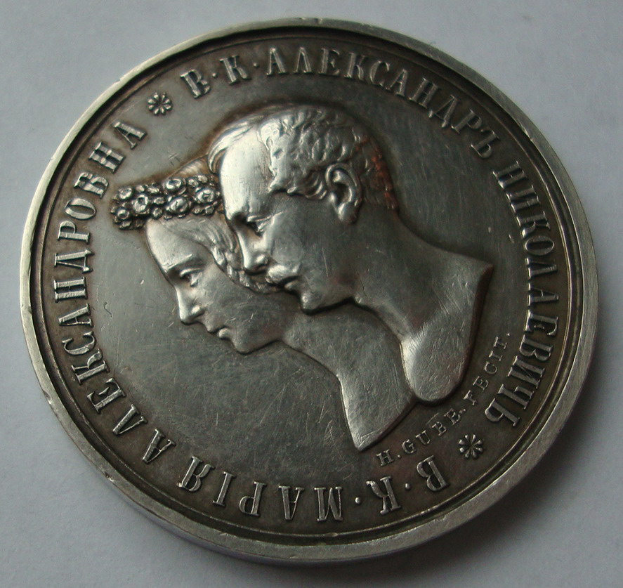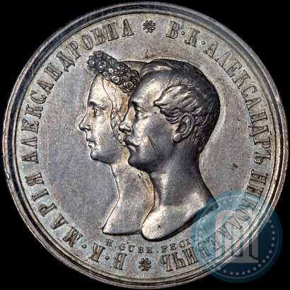 Медаль приуроченная к венчанию императора Александра 2 и Марии Александровны.