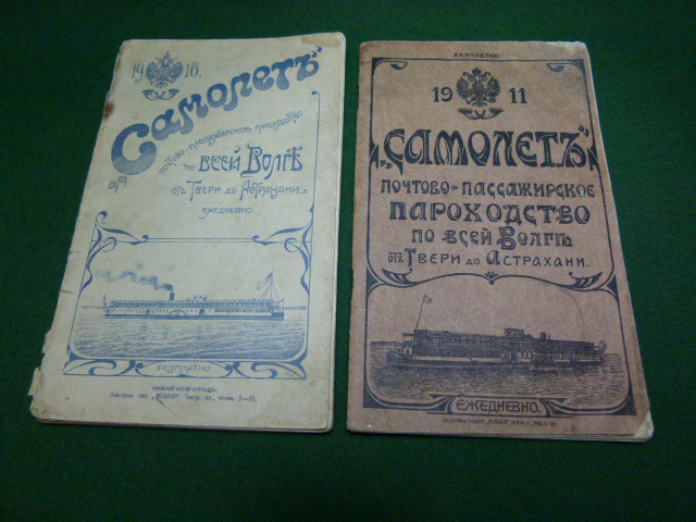 Пароходство во всей Волге и Каспийскому морю. 40 комфортабельно устроенных легко-пассажирских пароходов американского типа, совершают ежедневные рейсы по всей Волге от Твери до Астрахани с остановкою во всех попутных городах., 4 л.иллюстраций, рекламы. Бумажная издательская обложка. 1910г - 120*195 мм. все листы, хорошее состояние, 1911г.- 116*192 мм. нет листов - 21-22стр. 41-44стр. Предложите.