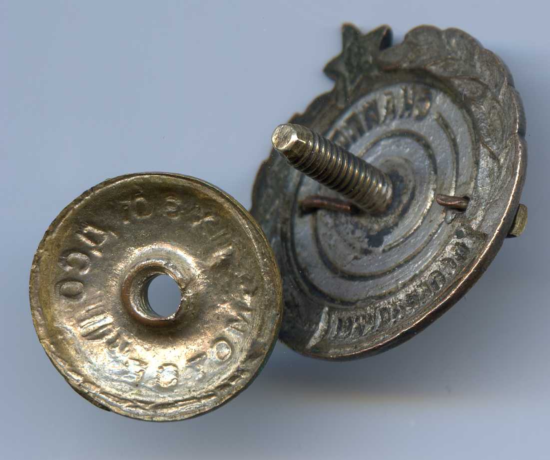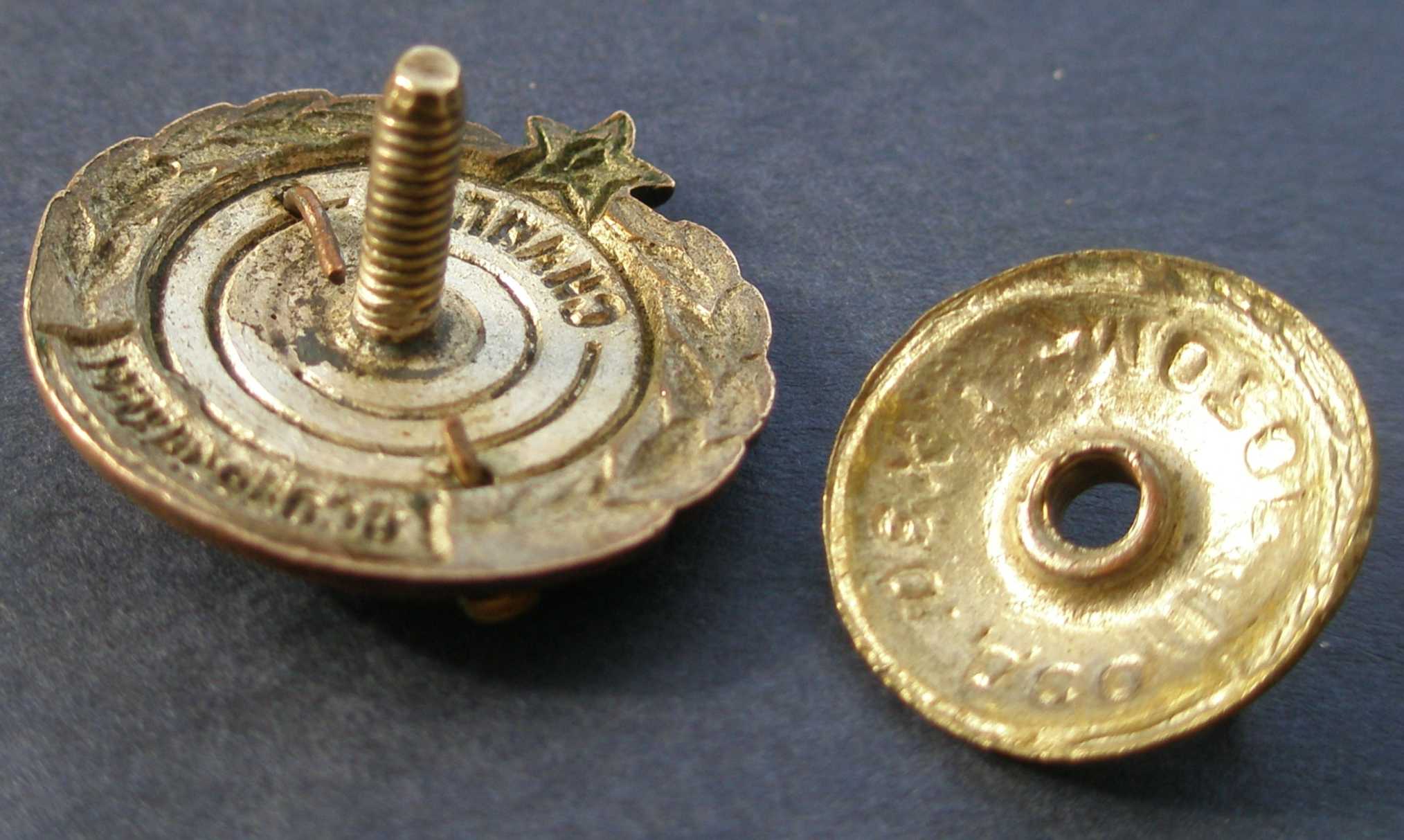 Скольчик на красной ленте внизу, на белой эмали царапинки.