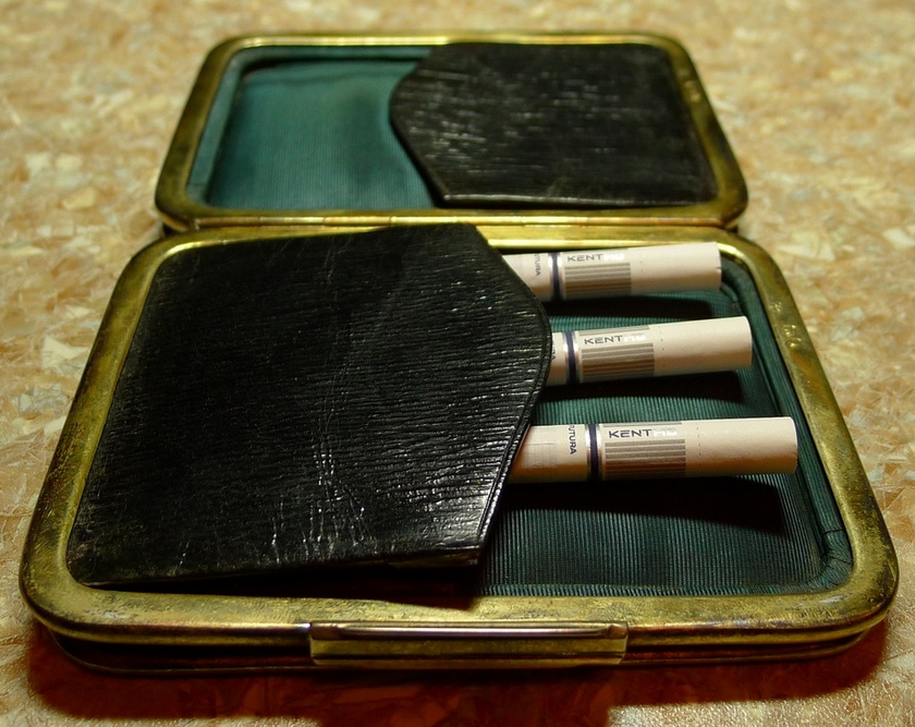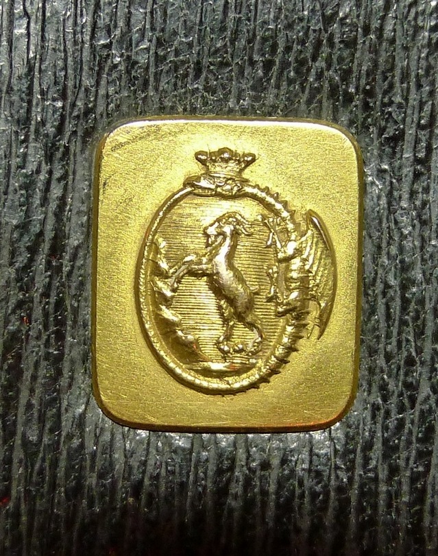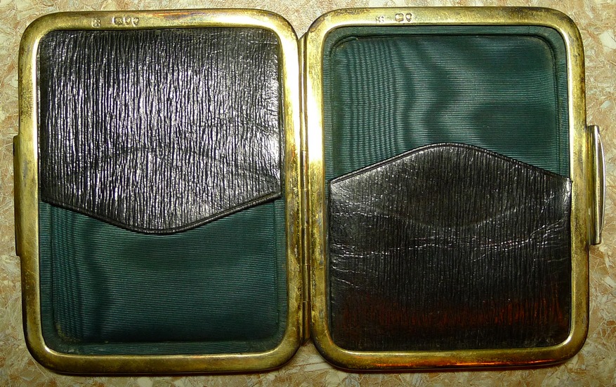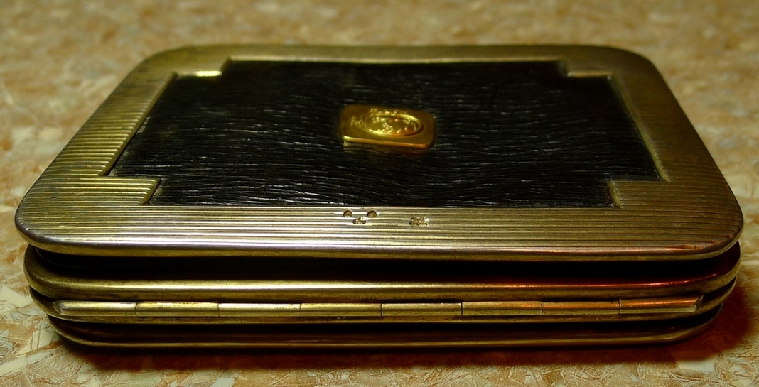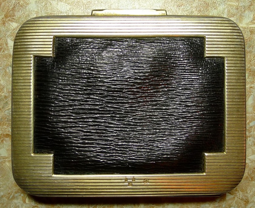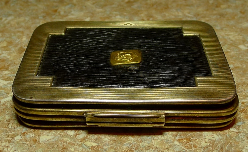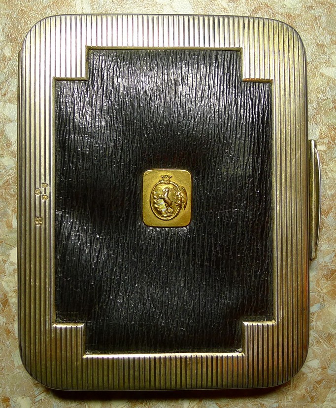 Старинный Английский портсигар в серебре с золотой накладкой с изображением уробороса и козла.