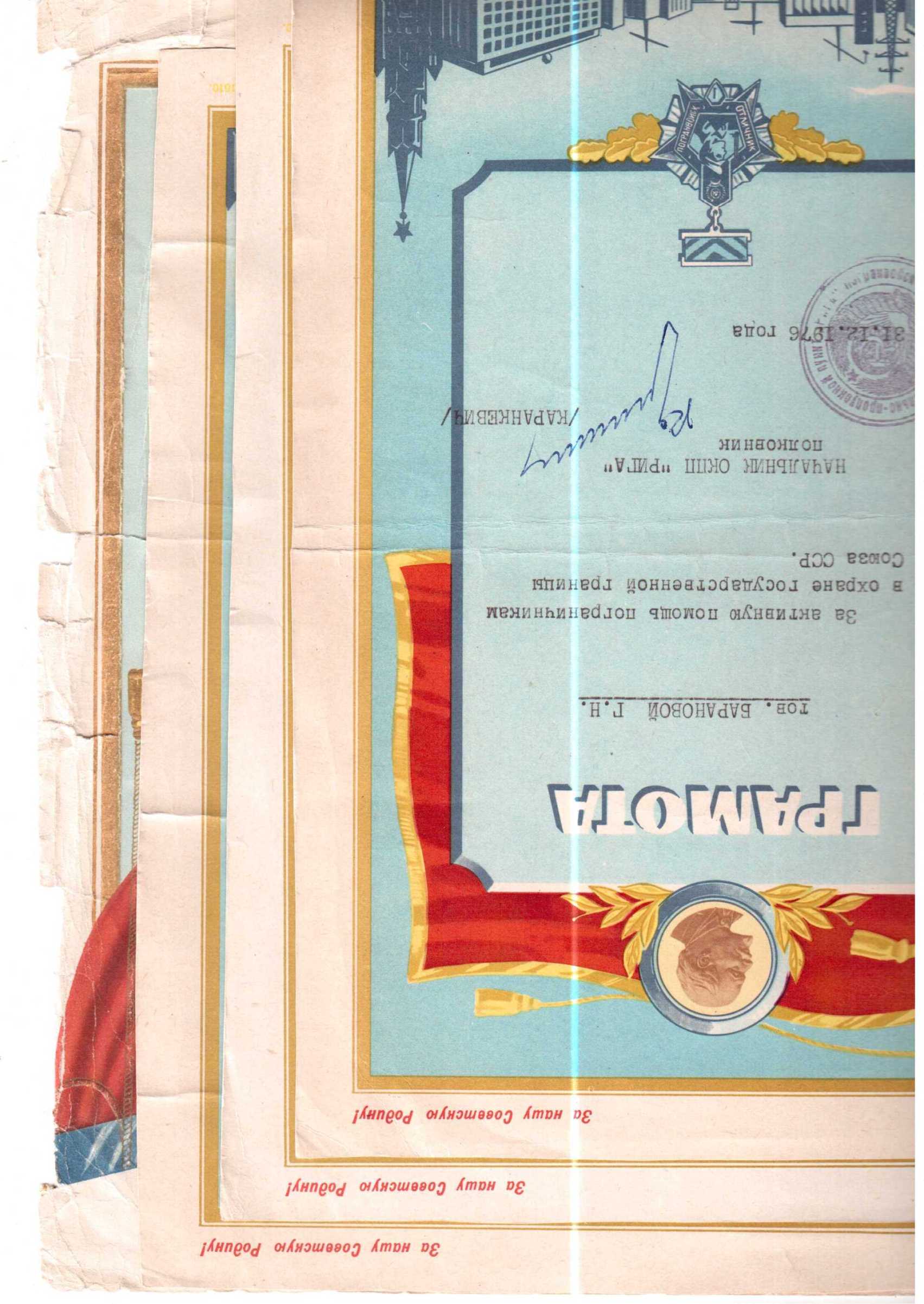 Грамоты подрезаны.Были сложены. Грамота от 1958г. одна сторона от разрывов как бахрома, по остальным краям есть надрывы около 2 см..Не подклеены. Если нужны доп. сканы, пишите сделаю. Формат А4.Пересыл всюду +5 у.е. Светлая полоса от сканера, в живую ее нет.Кому интересно , предложите.