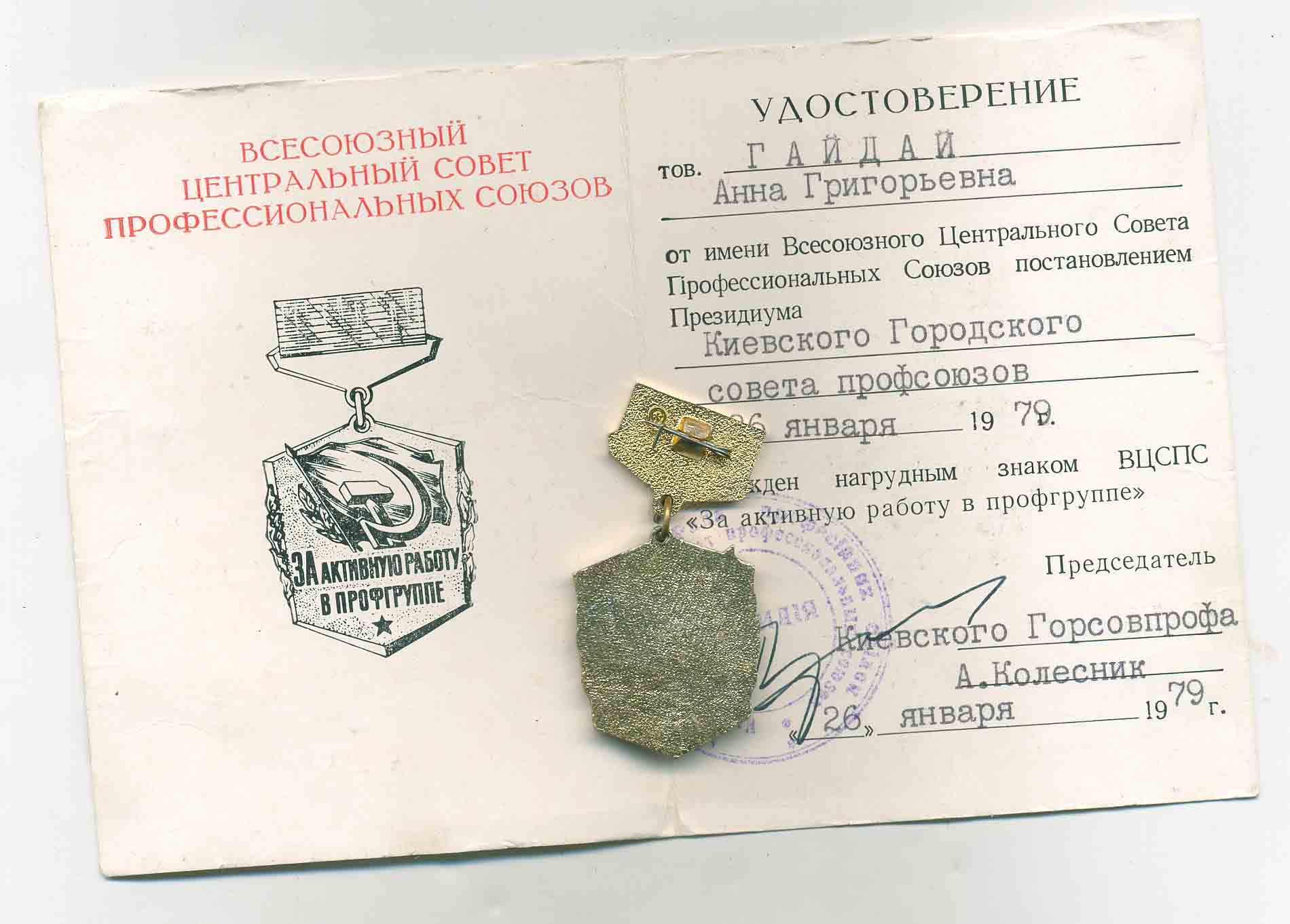 За активную работу в профгруппе с удостоверением