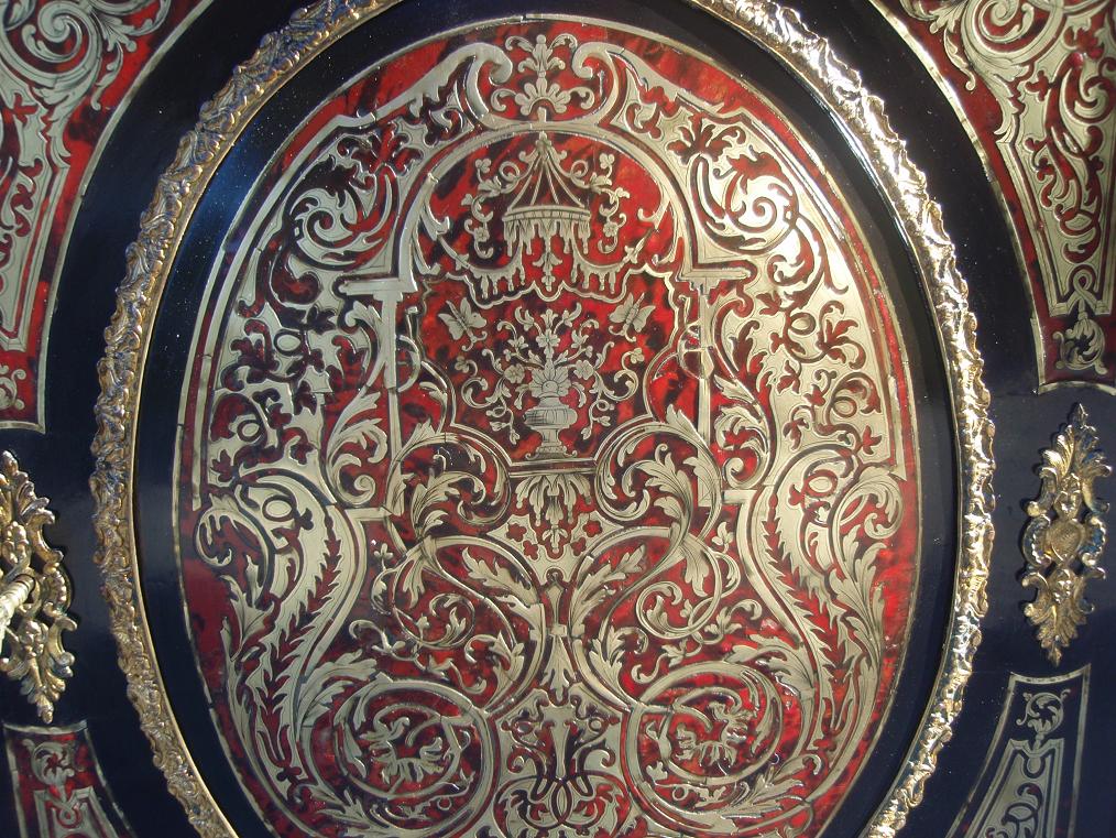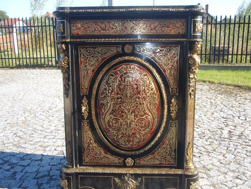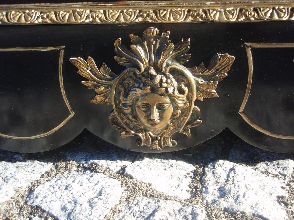 Размер комода 109х84х43см. Предмет почищен, одсвежена старая политура. Часть элементов интарсии из латуни дополнена. Сохранился оригинальный ключ и замок в рабочем состоянии. Посмотрите на бронзы высокого класса, на которых хорошо сохранилась позолота.