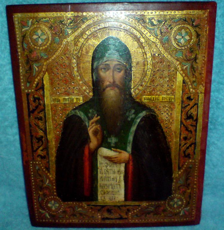 Икона Преподобный Геннадий Костромской и Любимоградский. Дерево. Темпера. Размер 27х22х2,8см.