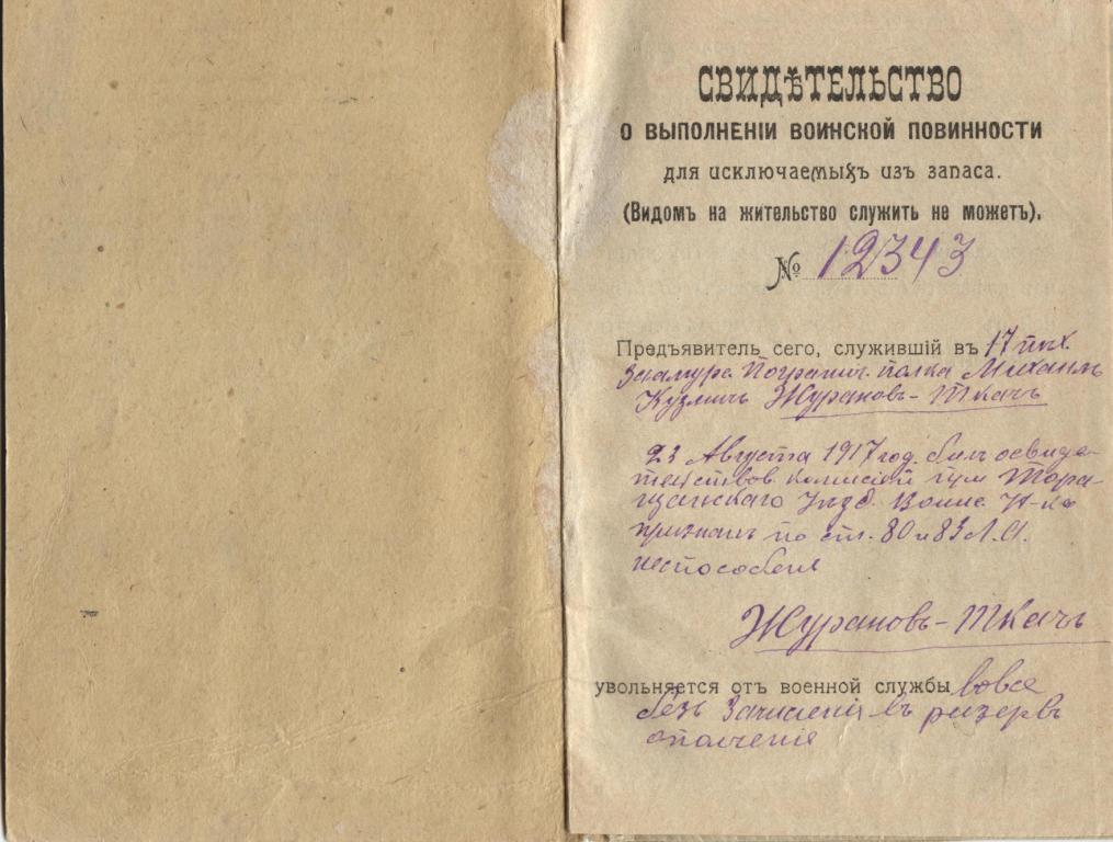 Бывший служащий 17 пехотного Заамурского пограничного полка Михаил Кузьмич Журанов-Ткач.